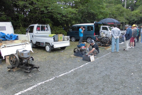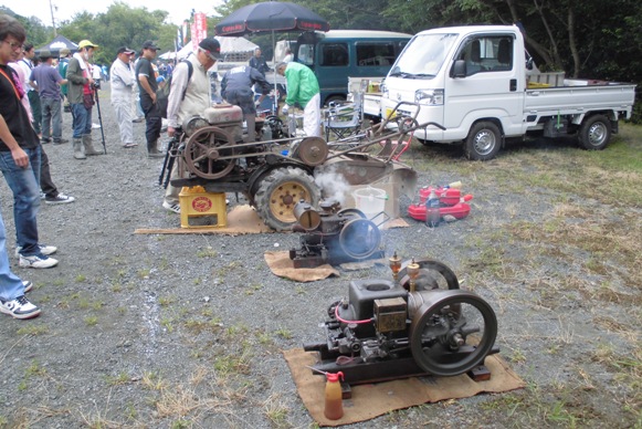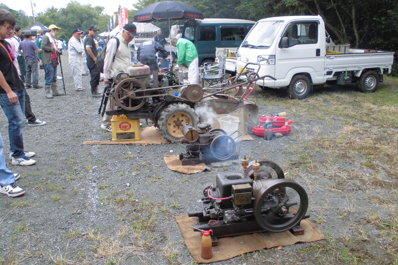 先ほどのクルマの展示とは違って、この古い(大正から昭和に掛けて主に農家などで使われていた)発動機を展示して実際に運転するというデモンストレーションは、なかなかオモシロイと思いました。