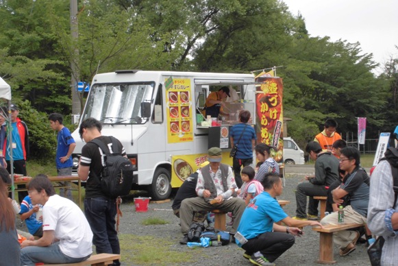 さて、ちょっと昼食には早い感じがしましたが、この後の業務はラリー競技が終了するまでここには戻れなさそうでしたので、例のチケットを使って焼きそばと缶コーヒーを頂きました。