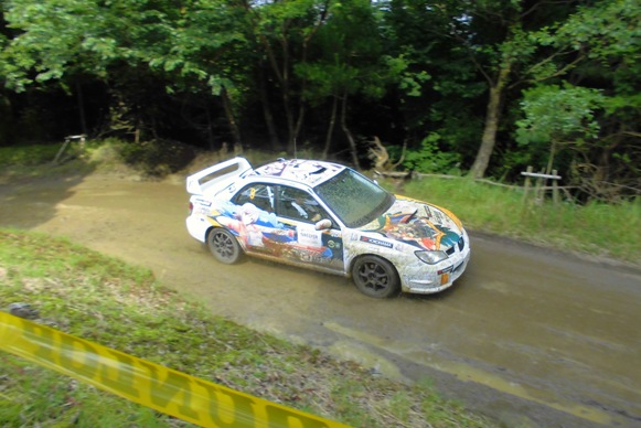 ぬかるんだ路面を蹴立ててコーナーを立ち上がっていく姿をよく捉えています。
