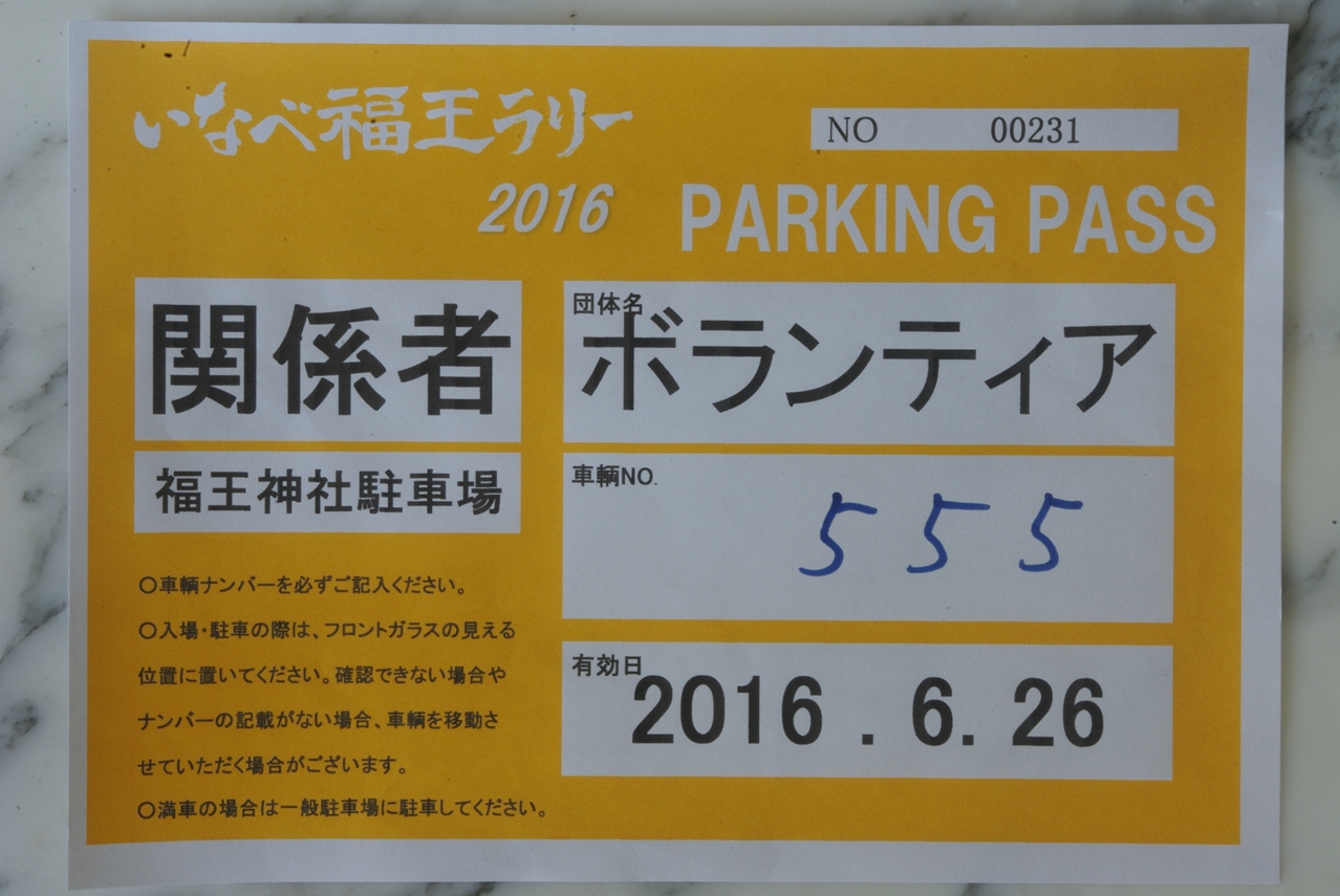 本日は大石さんのお誘いで、いなべ福王ラリー2016にMASCメンバー「青い軍団」からボランティアスタッフとして参加させていただきました。