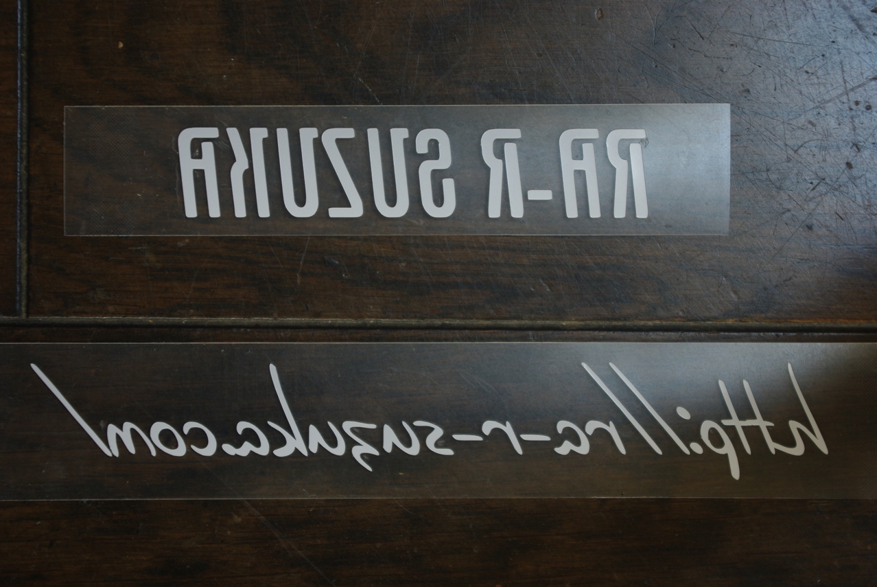 使用したカッティングデータは、以前作成した私のウェブサイトのURLをデザインしたものと、新規に少しバーションの異なるフォントで作成したオリジナルRA-R SUZUKAロゴの2種類です。