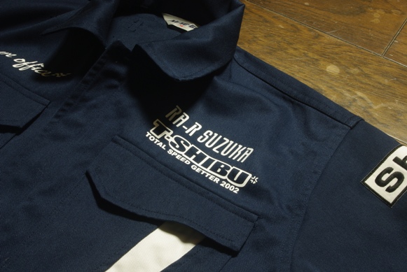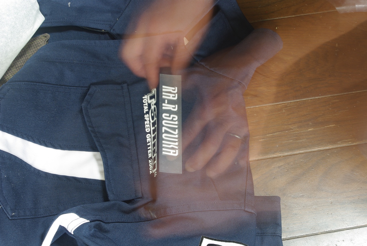 ツナギのどこに貼るかを想定した上で、サイズを決定しています。