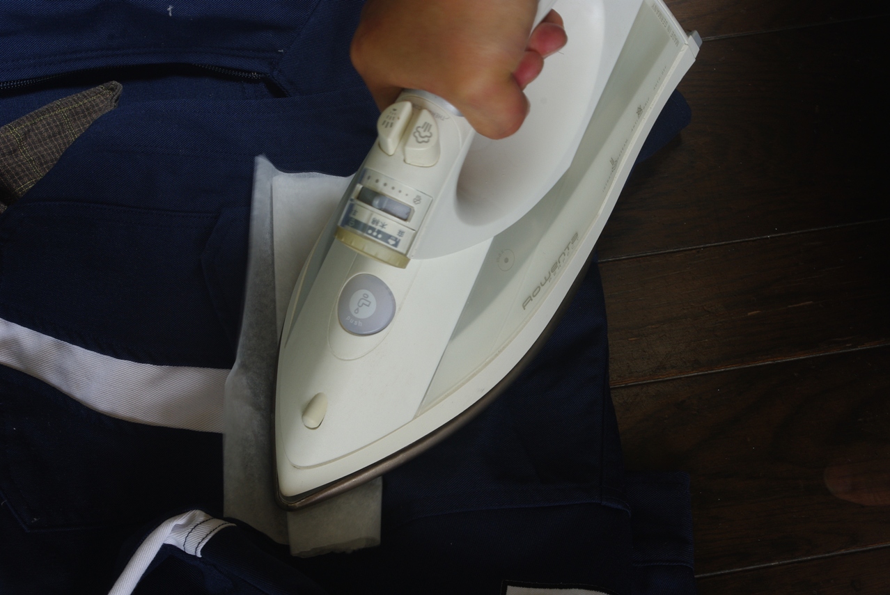 そのうち、アイロン温度をやや高めにセットしたり、アイロン台をワッペンのときに行ったコンパネ端切れとハンカチの台に取り替えたり、プレスの時間を増やしたり、圧力を強くしたりして最後はなんとか剥がれずに定着させることが出来ました。