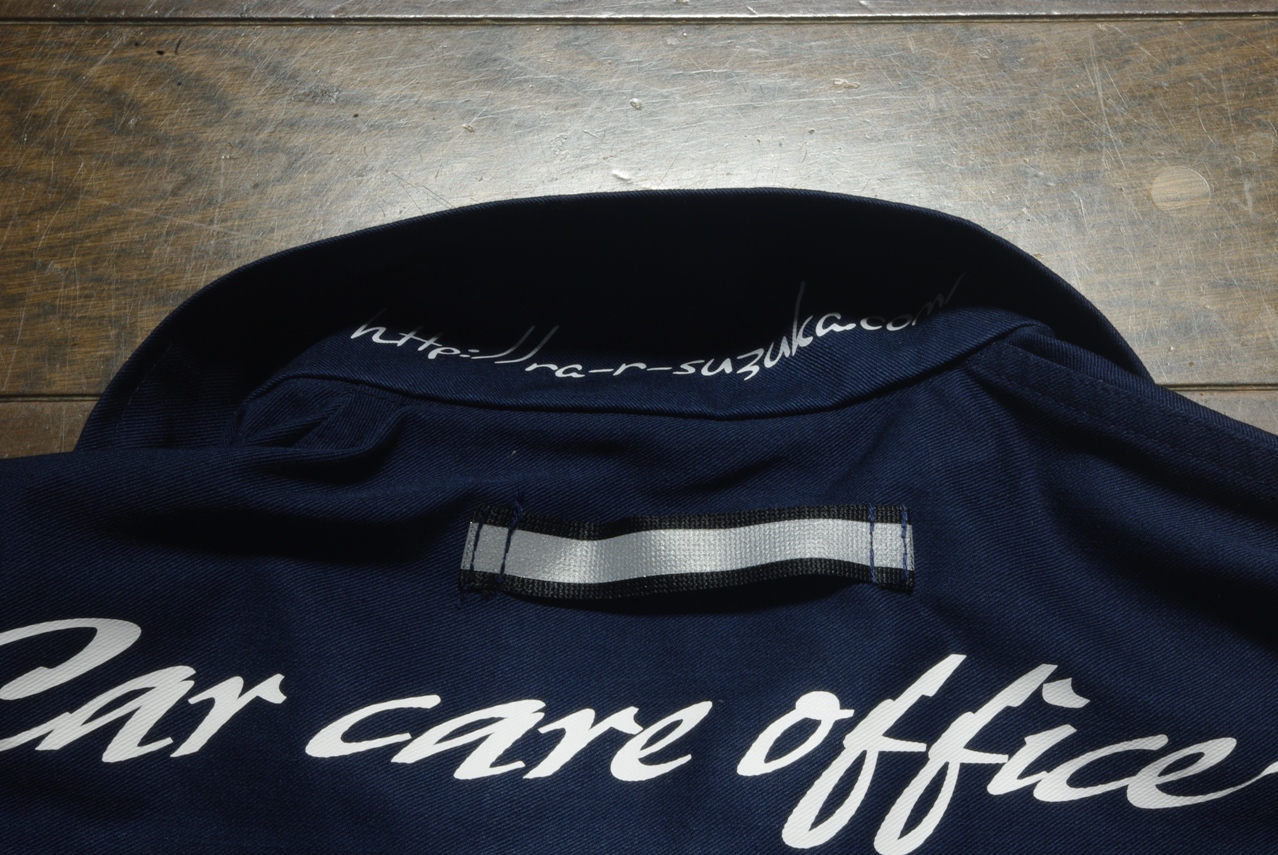 背中の大きなCar Care Office とほぼ同じような筆記体のロゴですが、この場所に持って来たことで、ケンカすることもありませんし、大きさも絶妙だと思います。