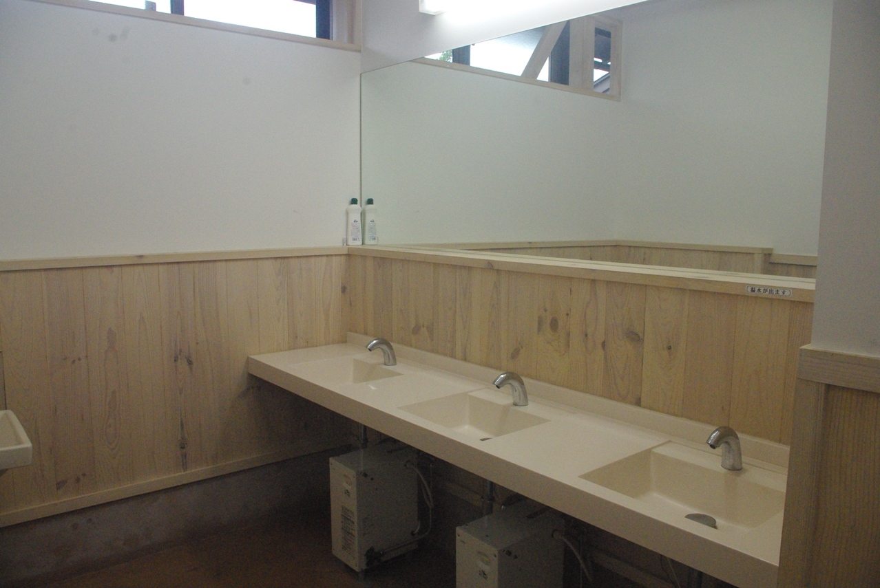 おトイレを借りようと中に入ってみたら、表の地味な建物の感じとは裏腹に、内装は実に綺麗で立派なトイレでした。