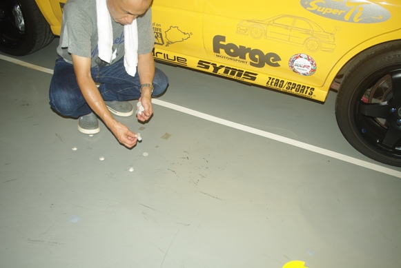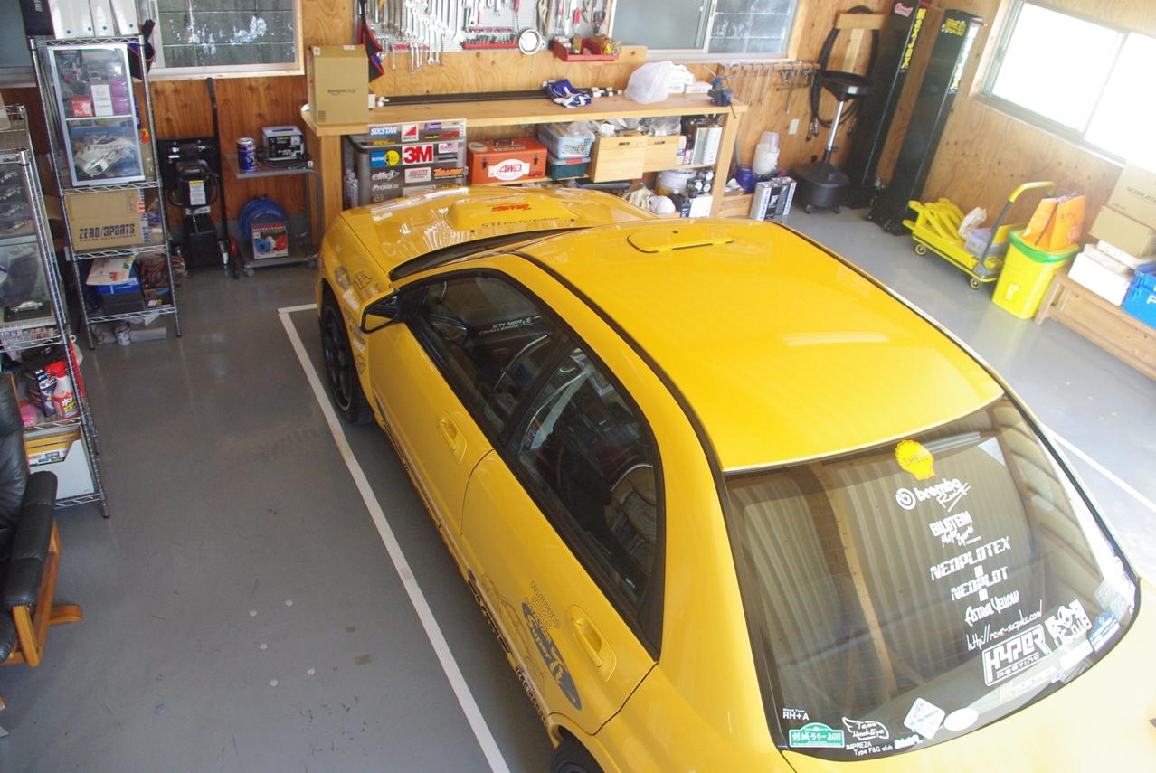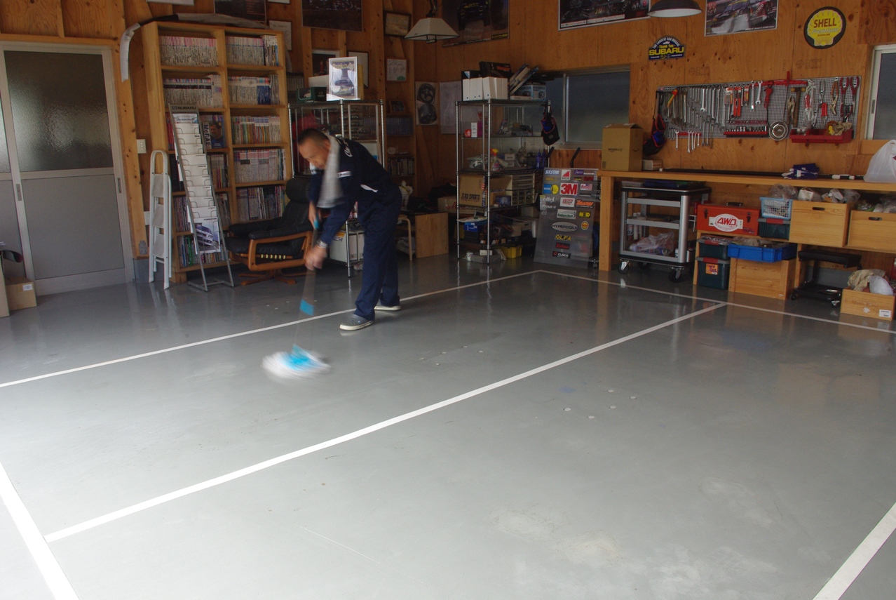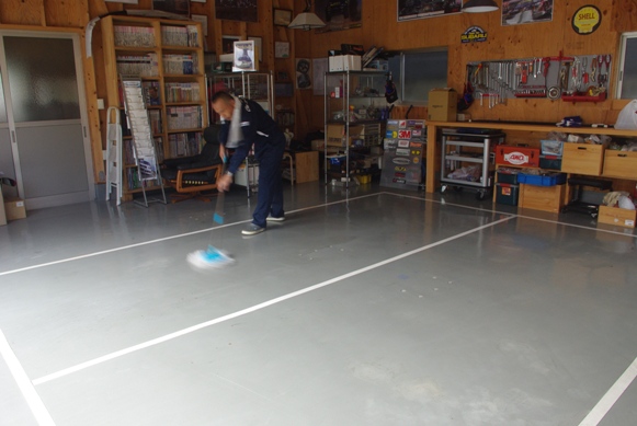 愛車を移動したついでに、久し振りにガレージの床をモップで拭きました。