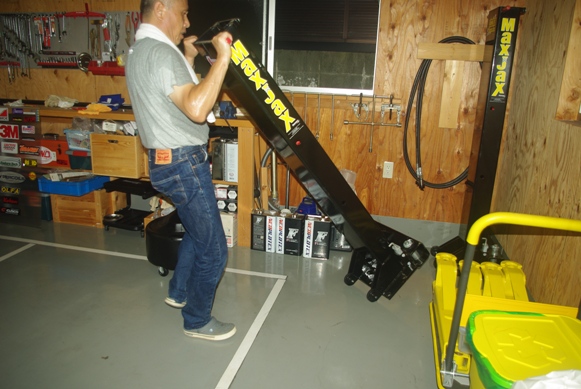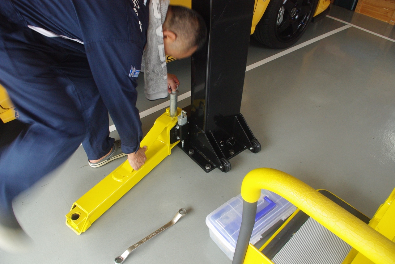 コチラ側も支柱を床にボルトで固定してから、同様にリフトアームを取り付けます。