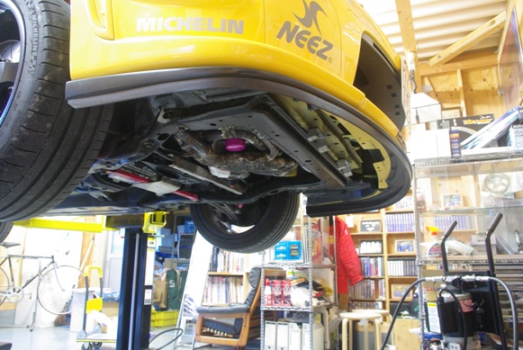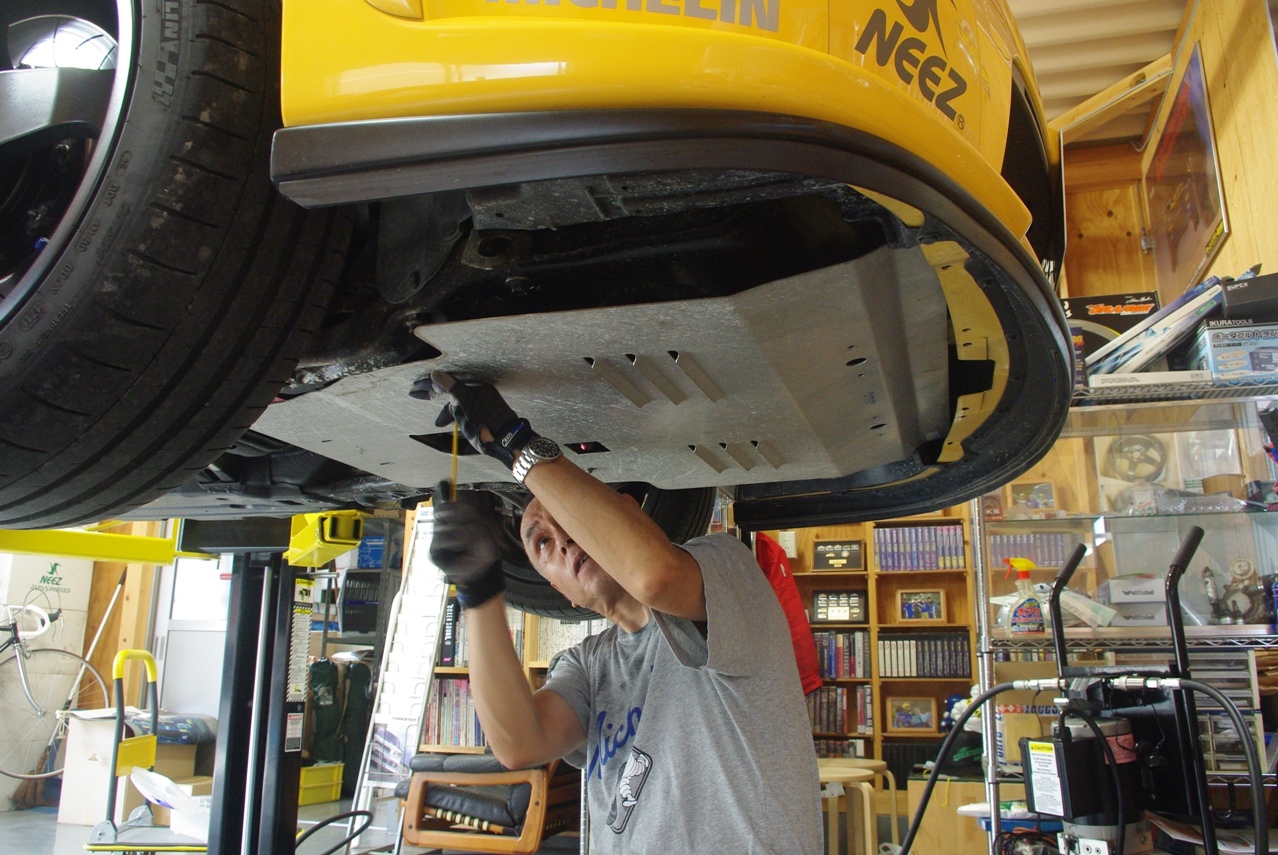 オイルパンに貼ってあった遮熱シートが半分剥がれ落ちてましたが、今回はこれでよしとしましょう。(笑)