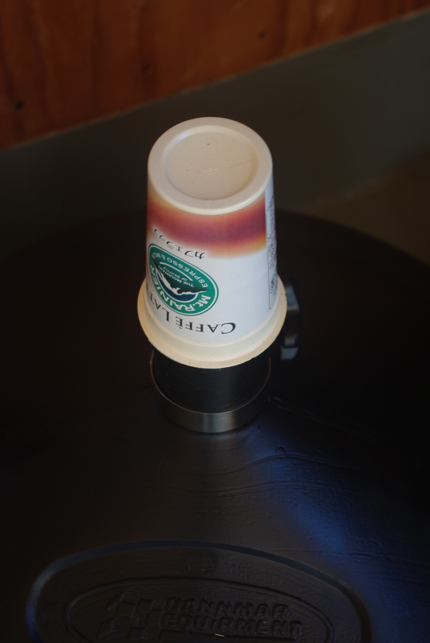 いつのころだか適当な蓋がないか見回して、丁度手近にこの空の容器がありましたので、蓋をしてみたらコレが案外具合が良かったので、それ以来ずーっと使っています♪