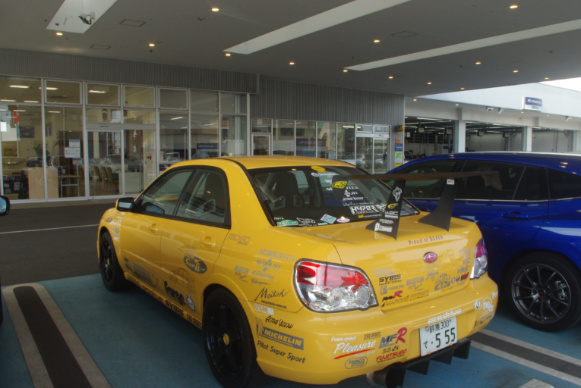 買ってあったお土産を三重スバルの筒井課長にお渡しするのと併せて、そのときの模様を報告がてらここ三重スバル津店を訪れました。