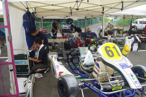 そうしてやって参りました、昨日に引き続いて鈴鹿サーキット南コースの一番奥の駐車場に設営してあるレーシングカートのサービステントです。