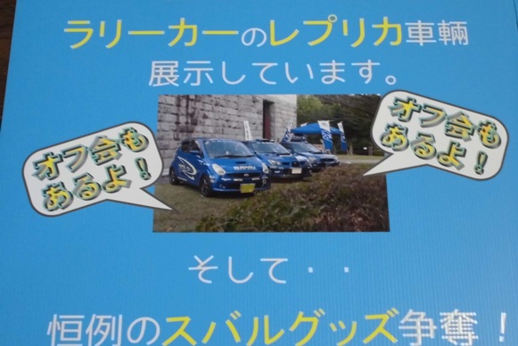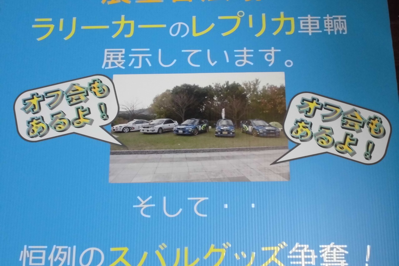 新城ラリースバルファンオフ会「青い軍団」代表、「青春指南役」こと大石英雄さんから、昨日新城ラリーメイン会場、愛知県立新城総合公園内の展望台エリアにて、昨年同様スバルファンオフ会とレプリカ車輛の展示が実施される旨のメール連絡を受け取りました。