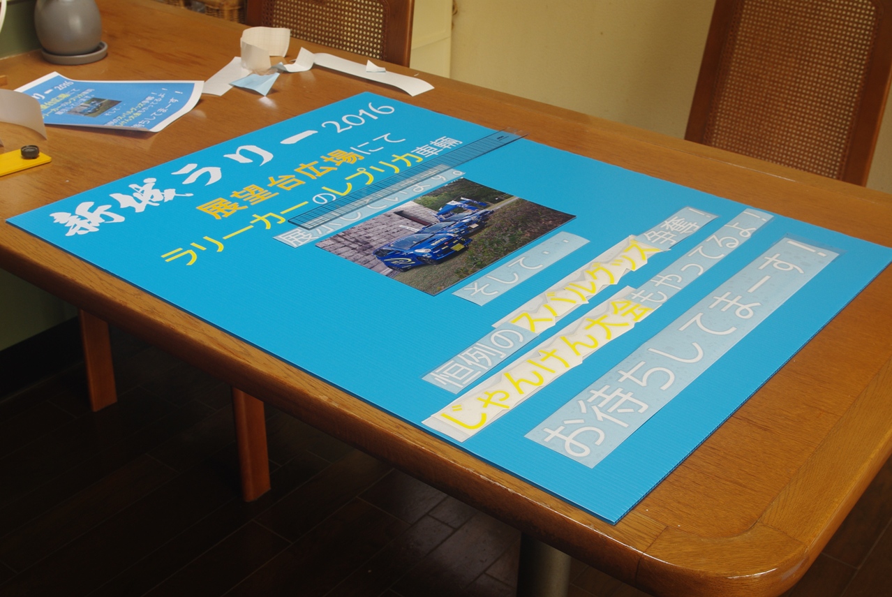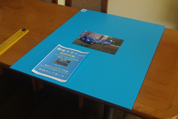 試しにプラダンボードに「新城ラリー」ステッカーを貼ってみました。