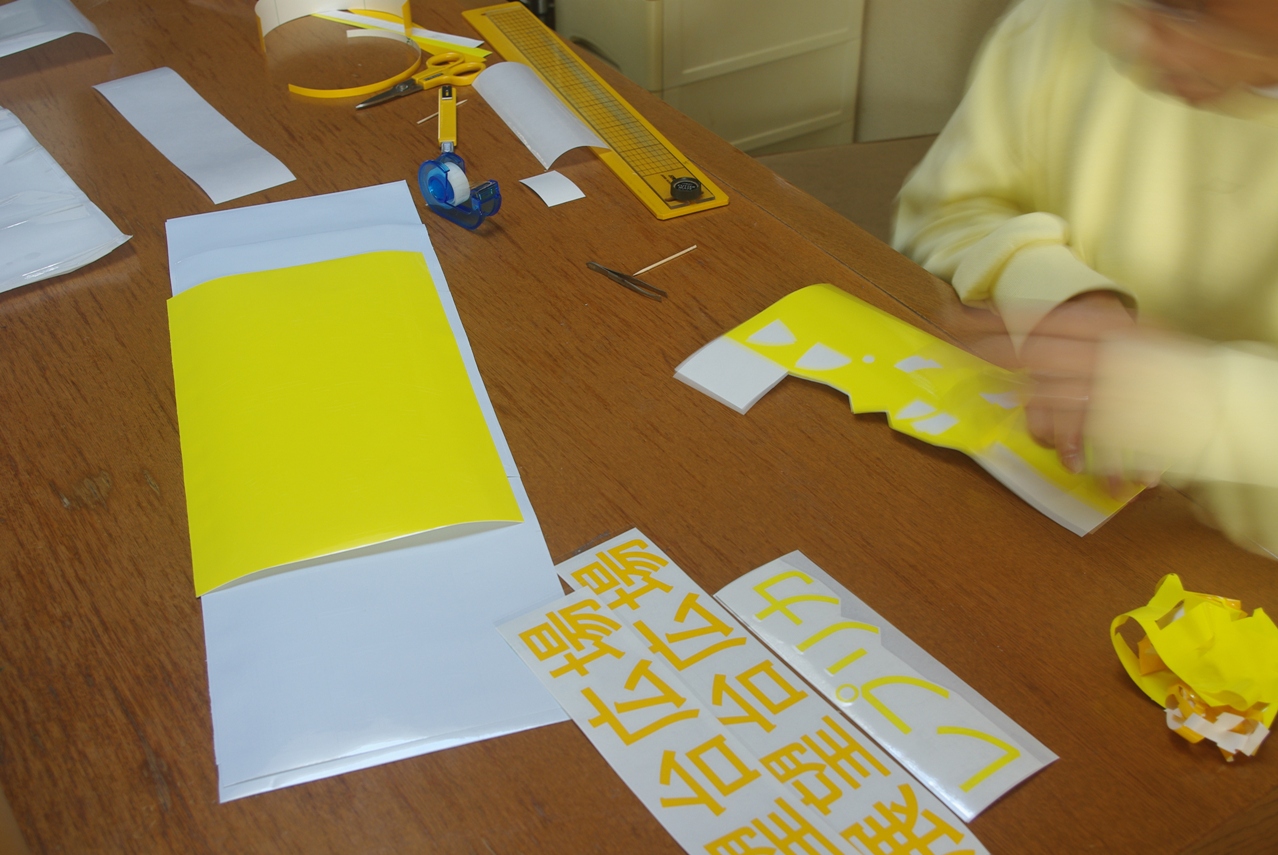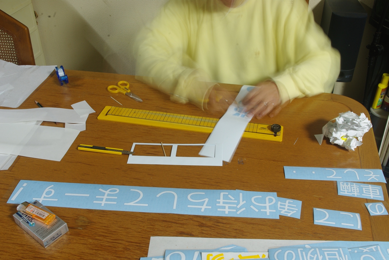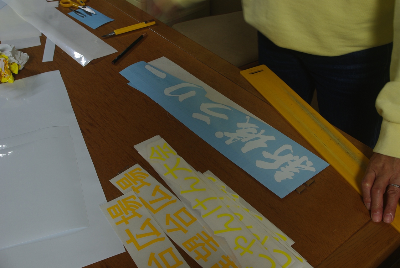 本日は昨日製作した「文字列」切り文字ステッカーを全て貼り込みました。