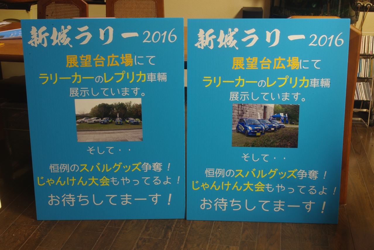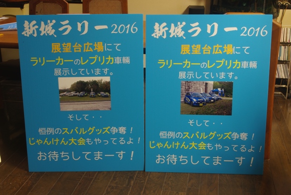 明日11月4日は、新城ラリー2016メイン会場の愛知県営新城総合公園に会場設営のため出掛けますので、案内板一式も持参することになっています。