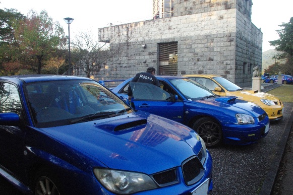 この集合場所には、事前に当オフ会に参加申し込みを受理され、会場でレプリカ車両を展示されるオーナーの方々と、ラリーファンオフ会に自車で参加され、公園内専用駐車場(紅葉の森)に駐車される方々だけが集まっています。
