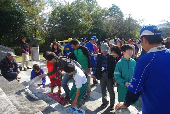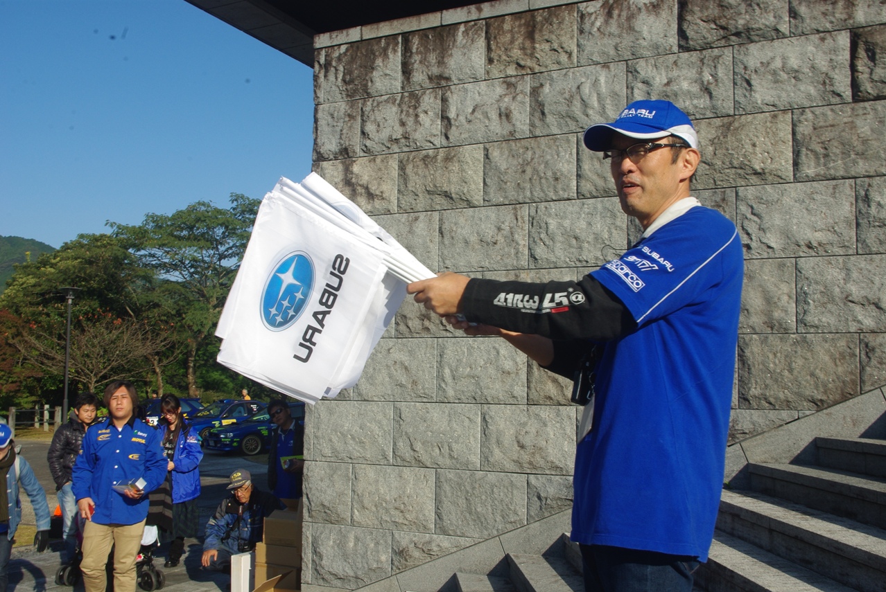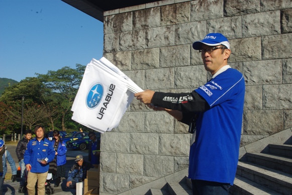 じゃんけん大会に続いて、このSUBARUフラッグがスバルオーナーの方のみに配られました。