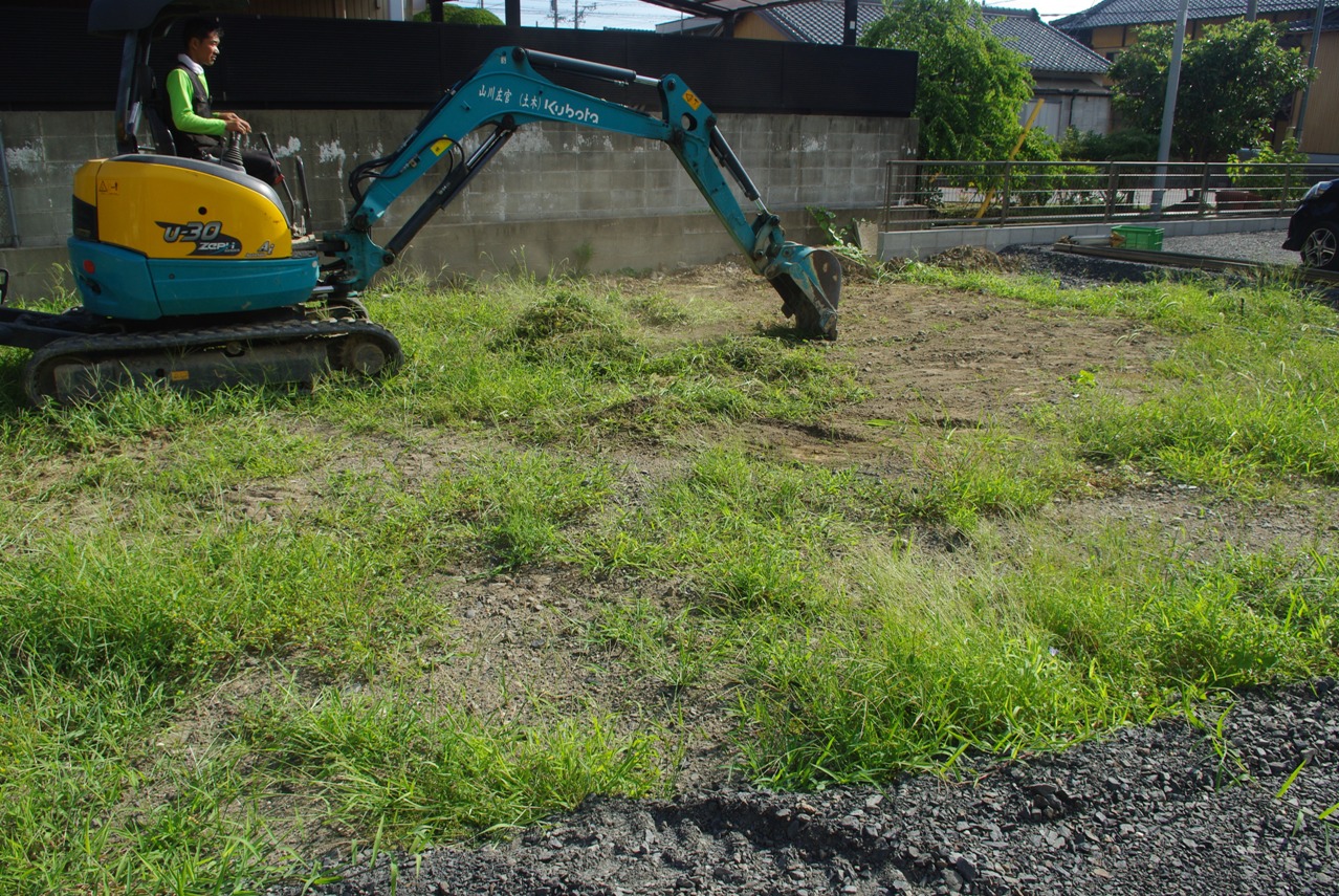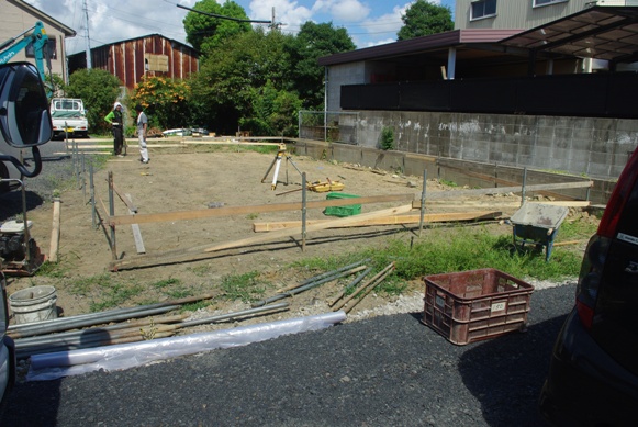 しばらく放置してあったので、夏草が結構生えてしまいまして、急な着工の知らせに草刈りも出来ず、業者の方には申し訳ありませんでした。