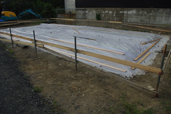 全体が白いのは、防湿用のビニール引きを行ったからです。