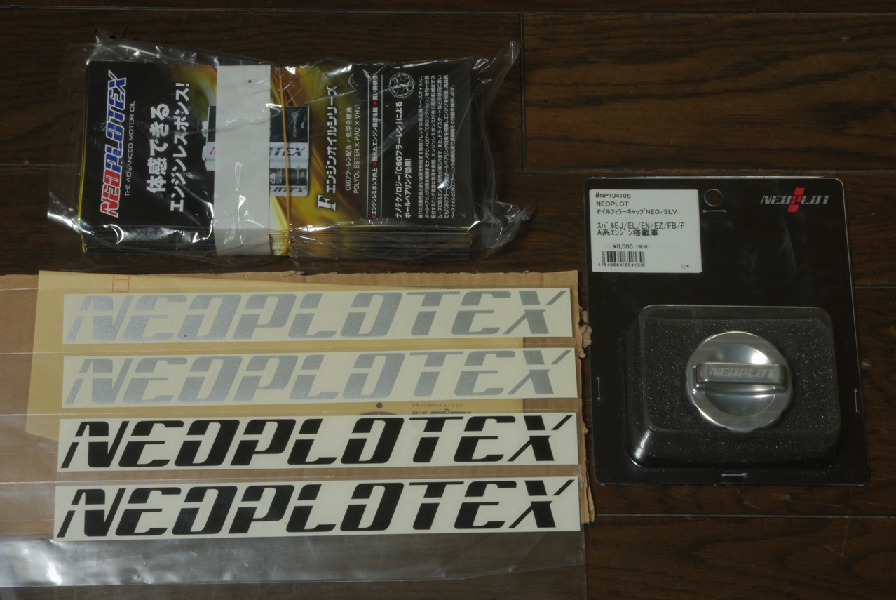 また、今年もPLOTの青木様より、協賛品としてNEOPLOTオイルフィラーキャップとNEOPLOTEXのステッカーを提供していただきました。