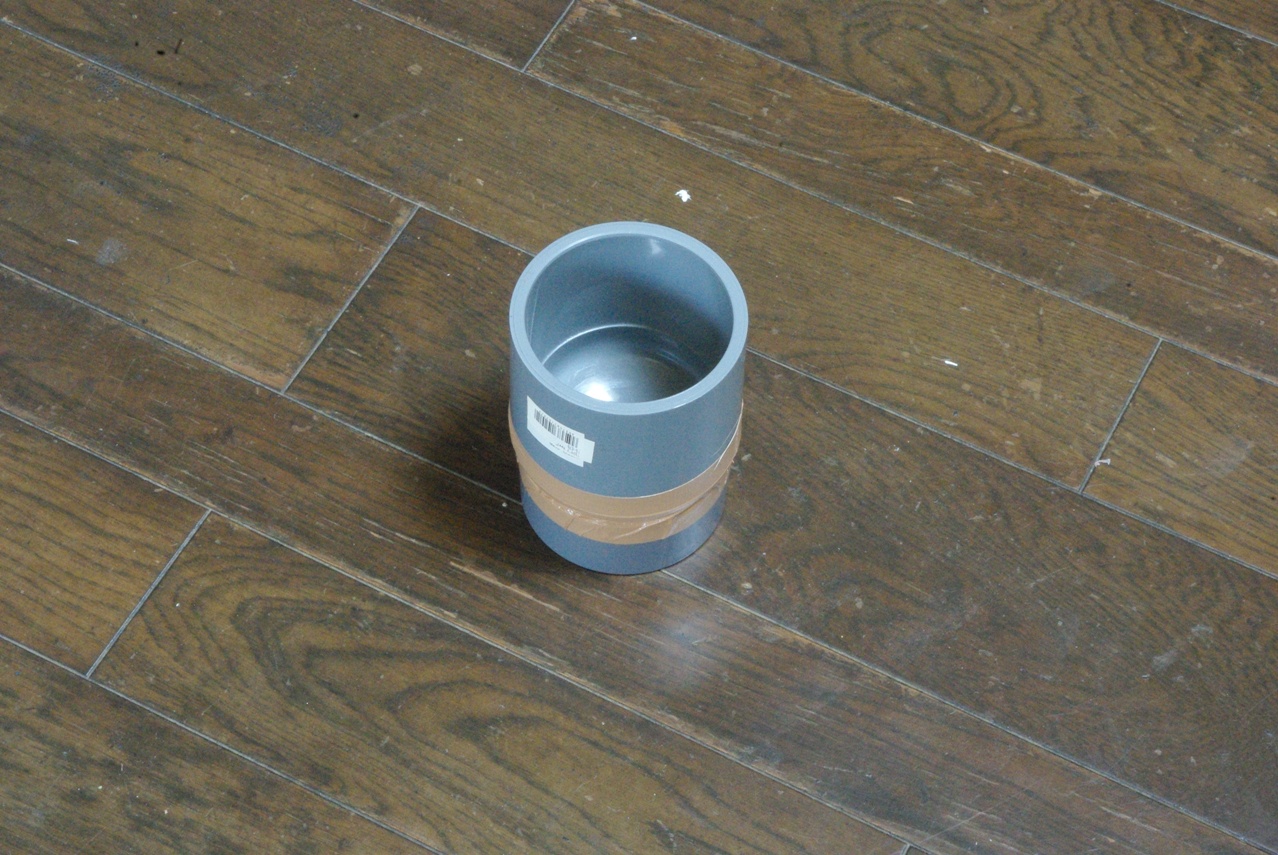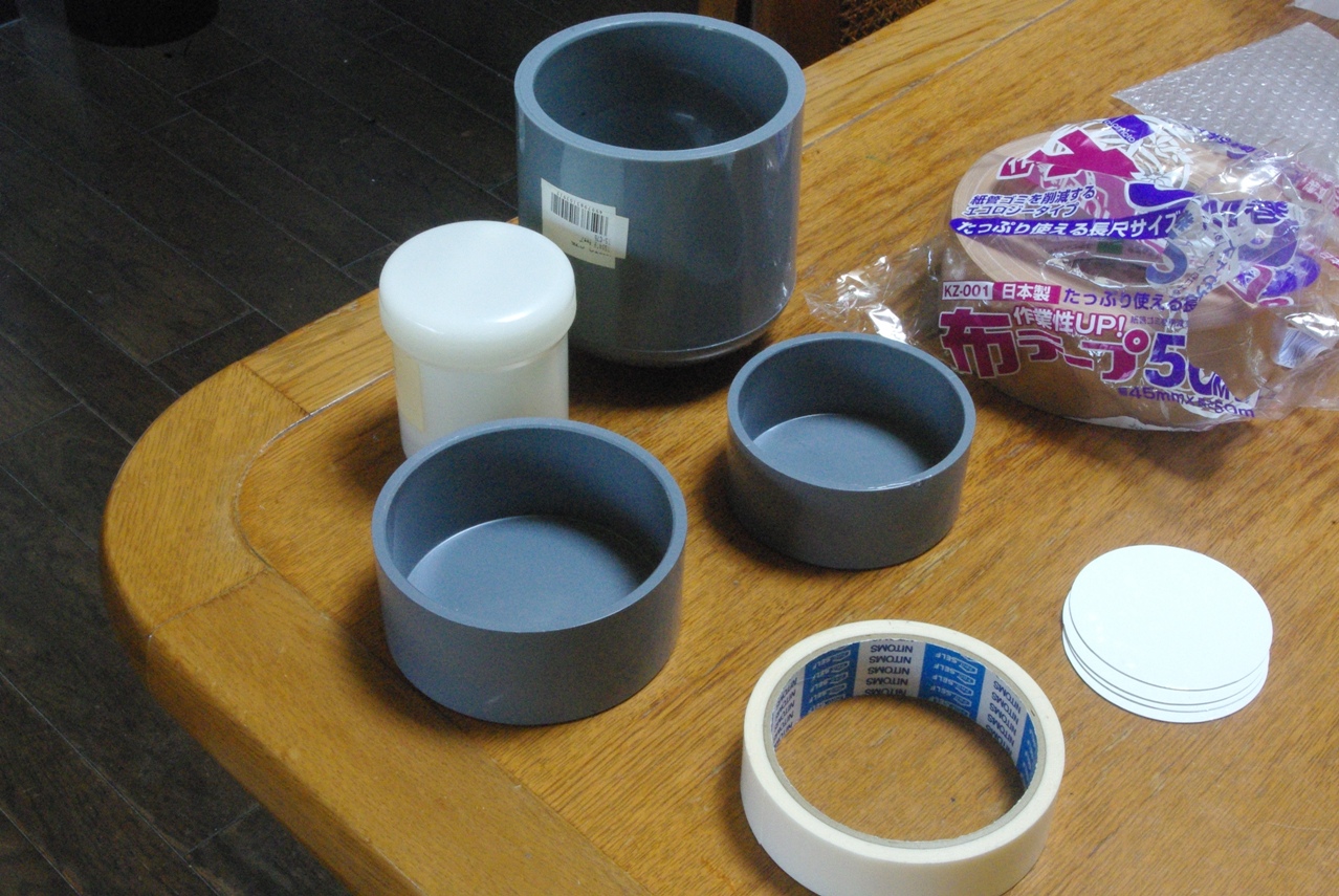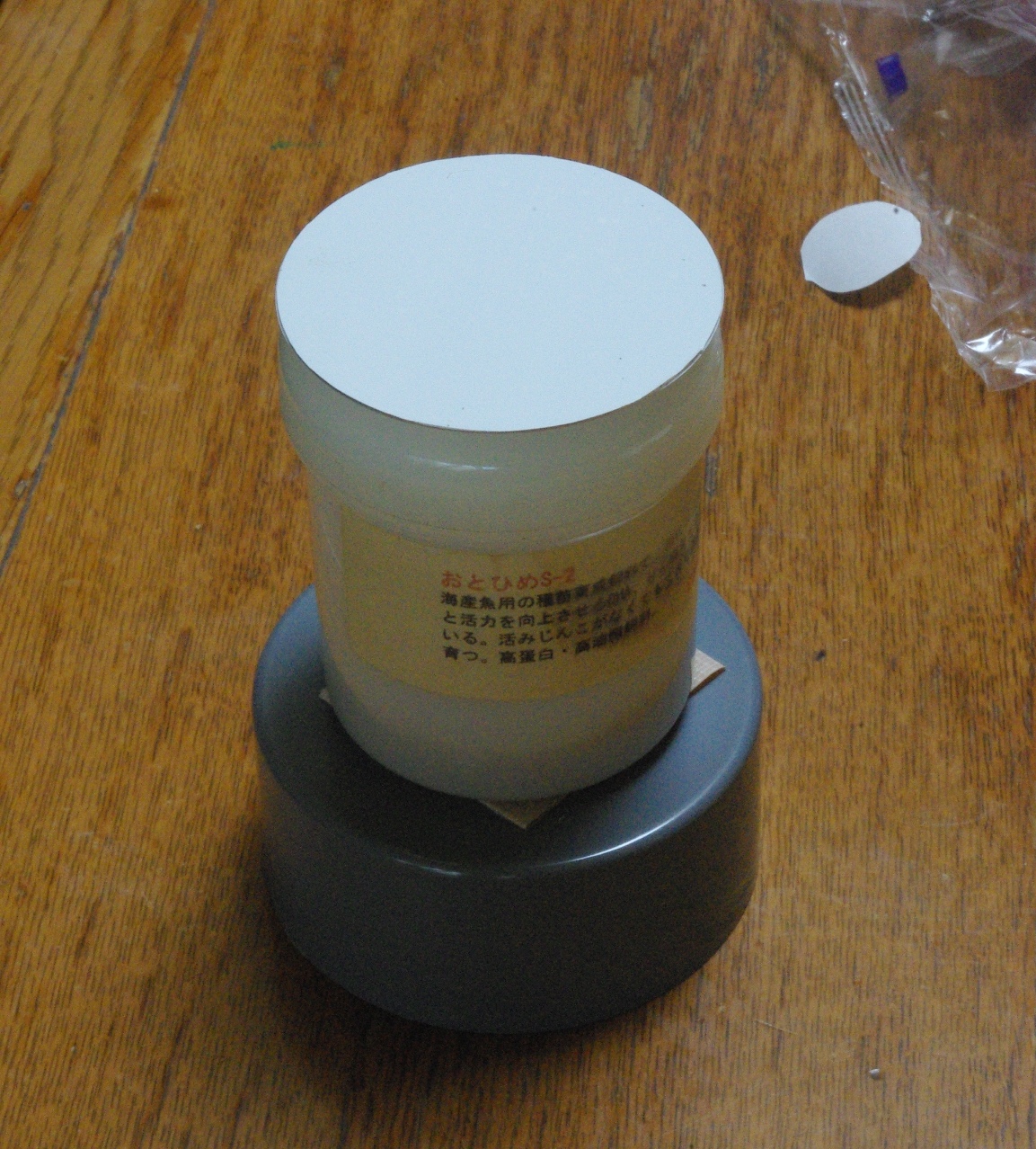 準備と云っても、塩ビ止水栓とエサ容器をこうしてくっつけるだけですが…(笑)