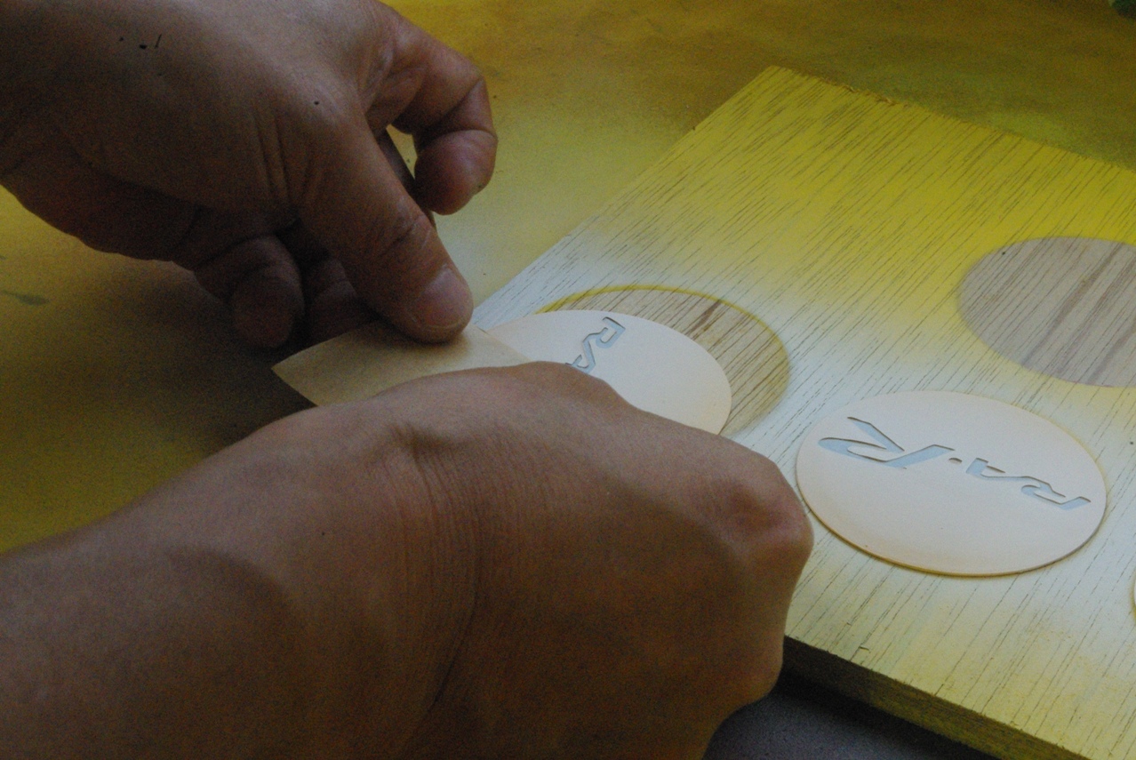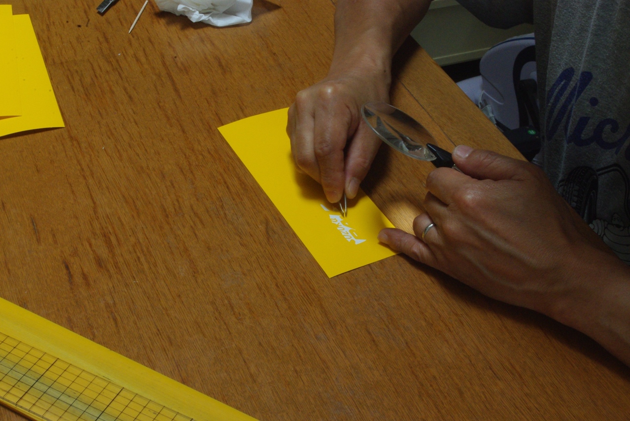 こちらは本物の文字塗装用マスキングシートですので、「マスキングシート精密貼り込みツール」を使用して正確にレンズに貼り込まなければなりません。