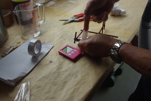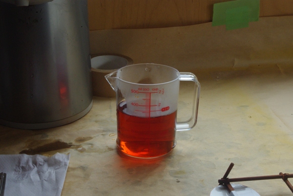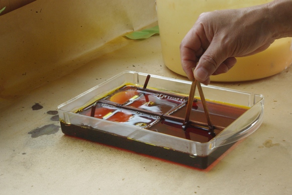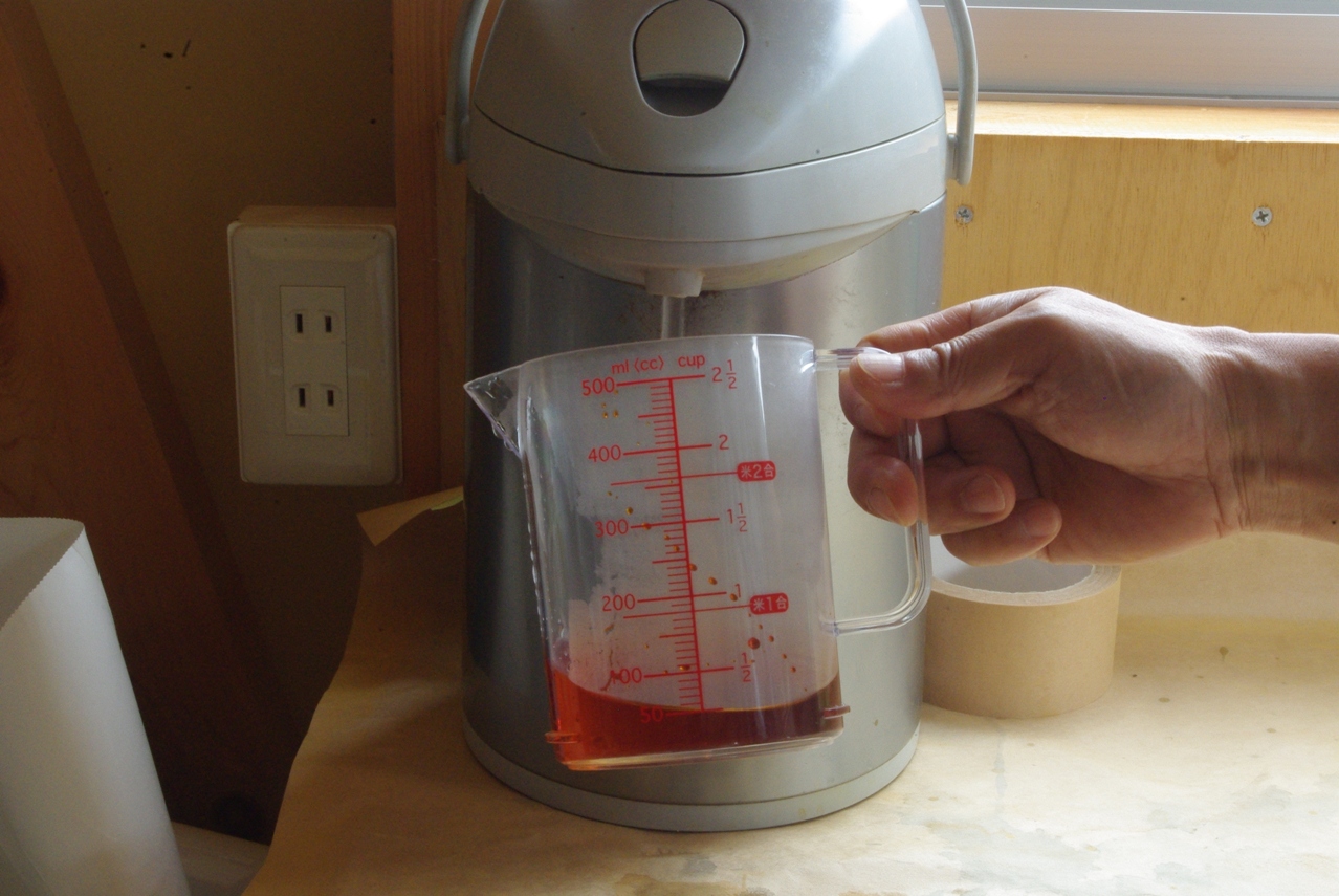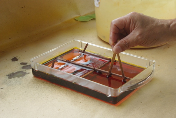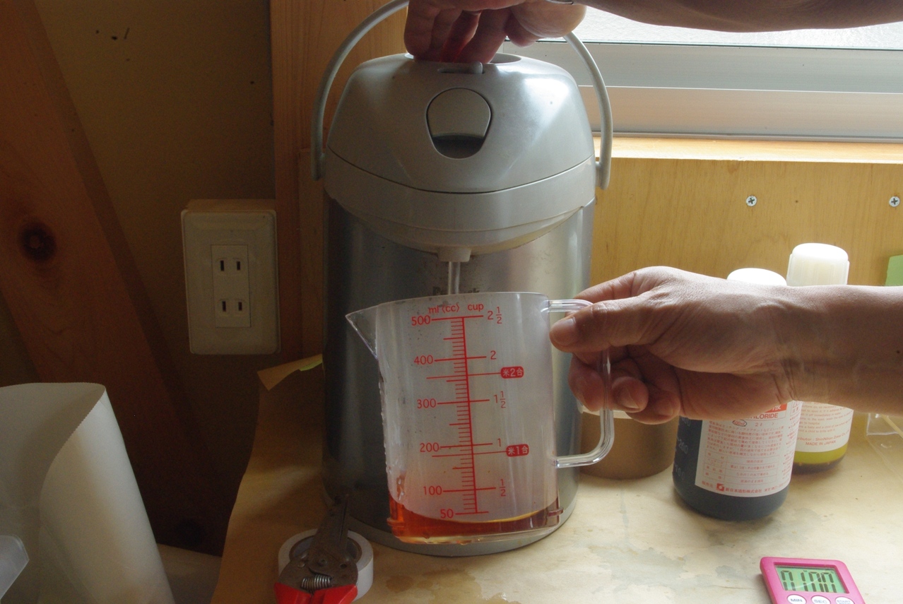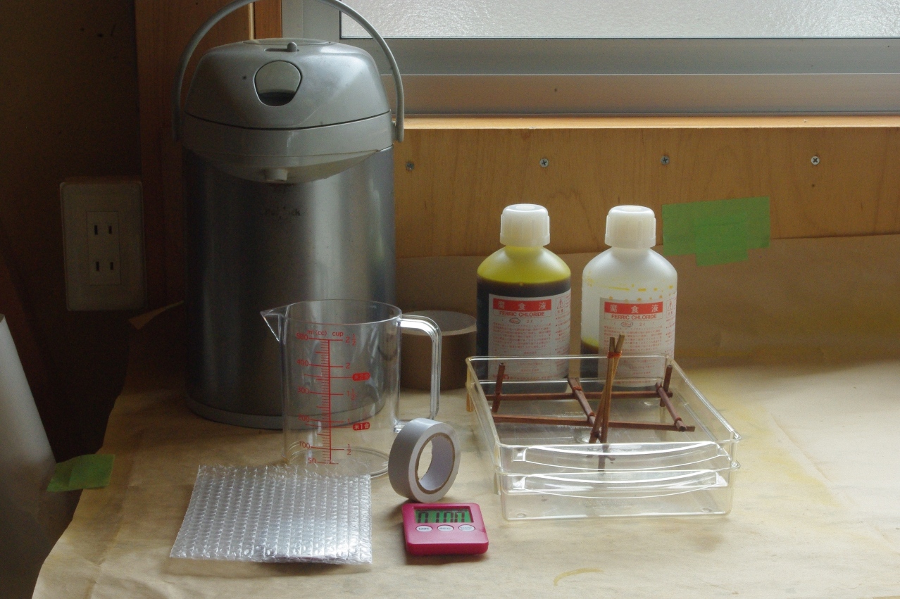 このポットに入れている熱湯も、エッチングの反応時間を左右する決め手になっていることは間違い有りません。
