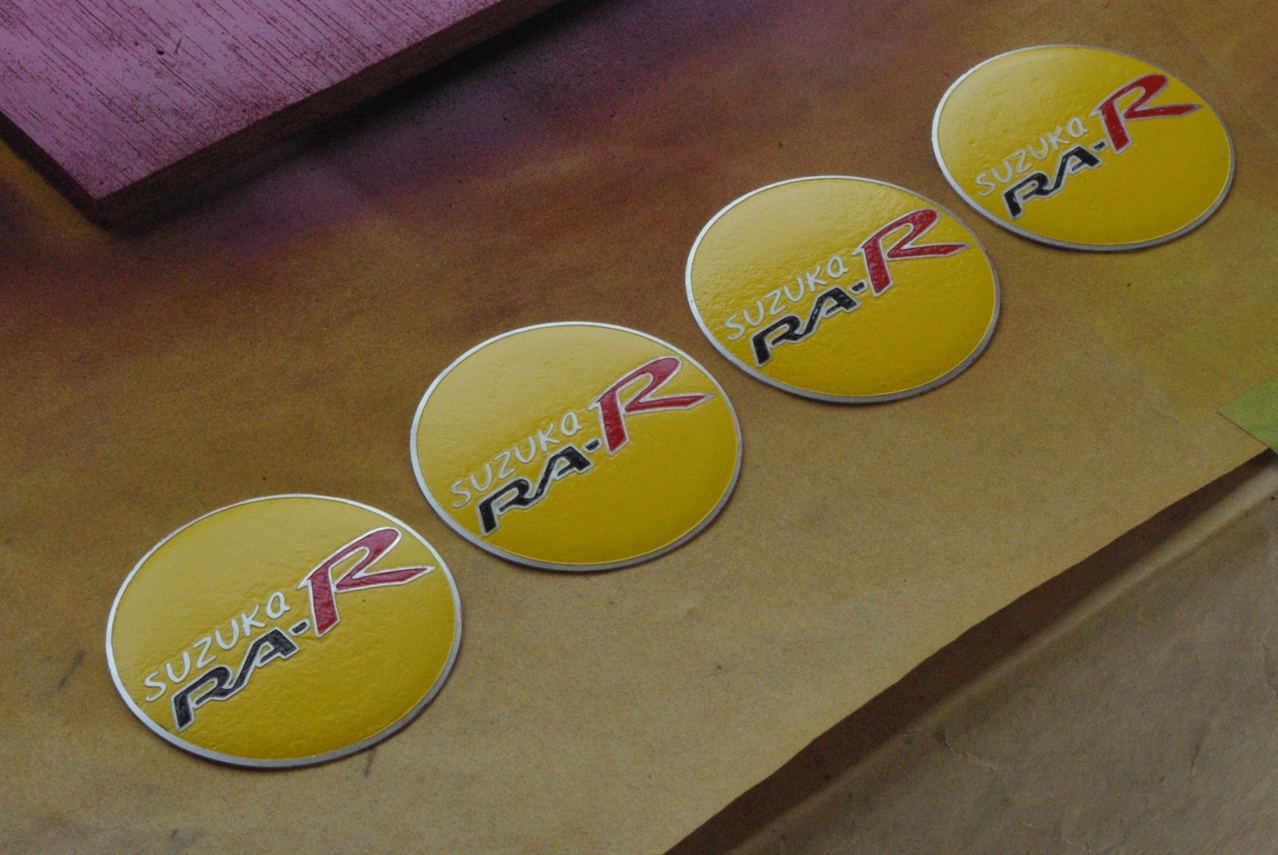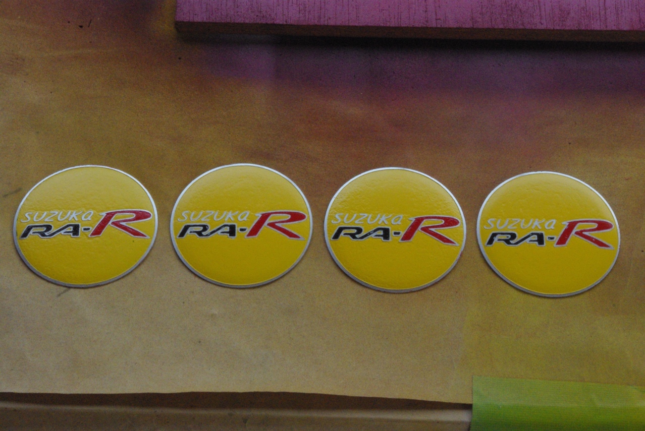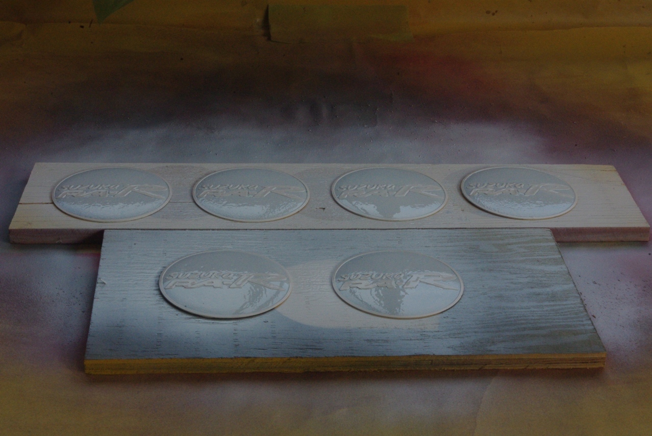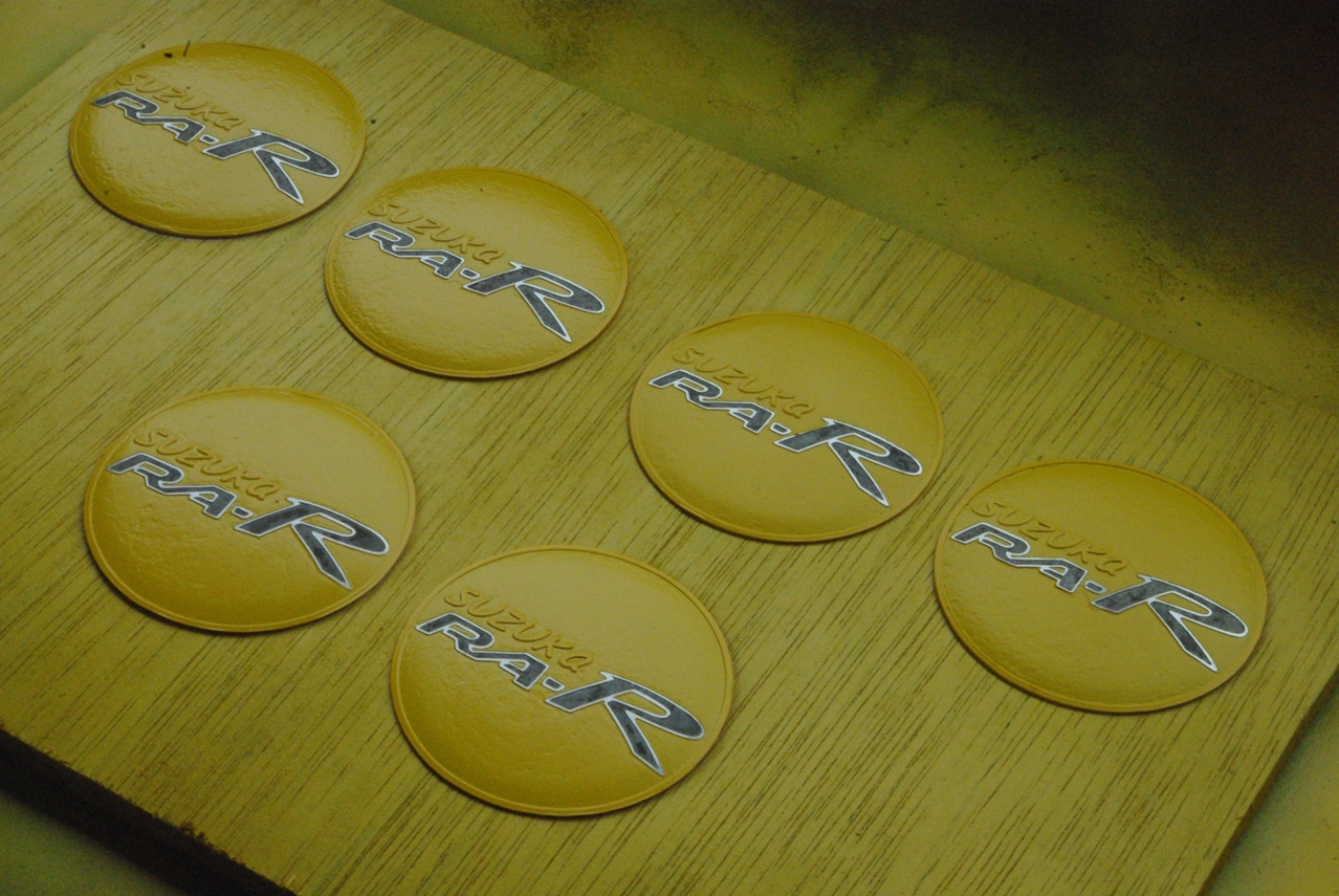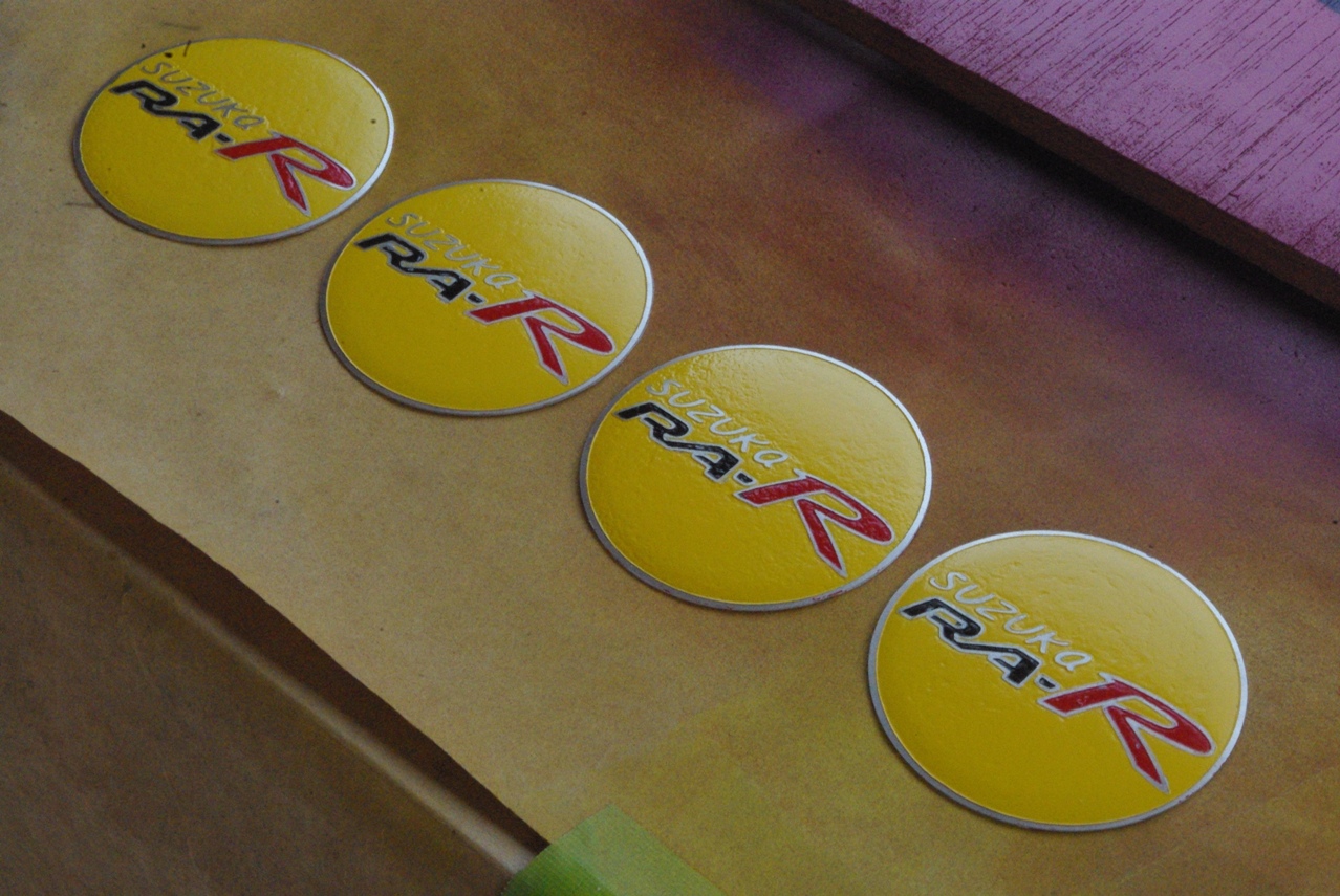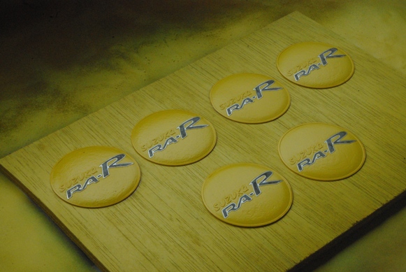 アールエーアール鈴鹿オリジナル自作ホイールセンターキャップレンズの仕上げ、クリア塗装の開始です。