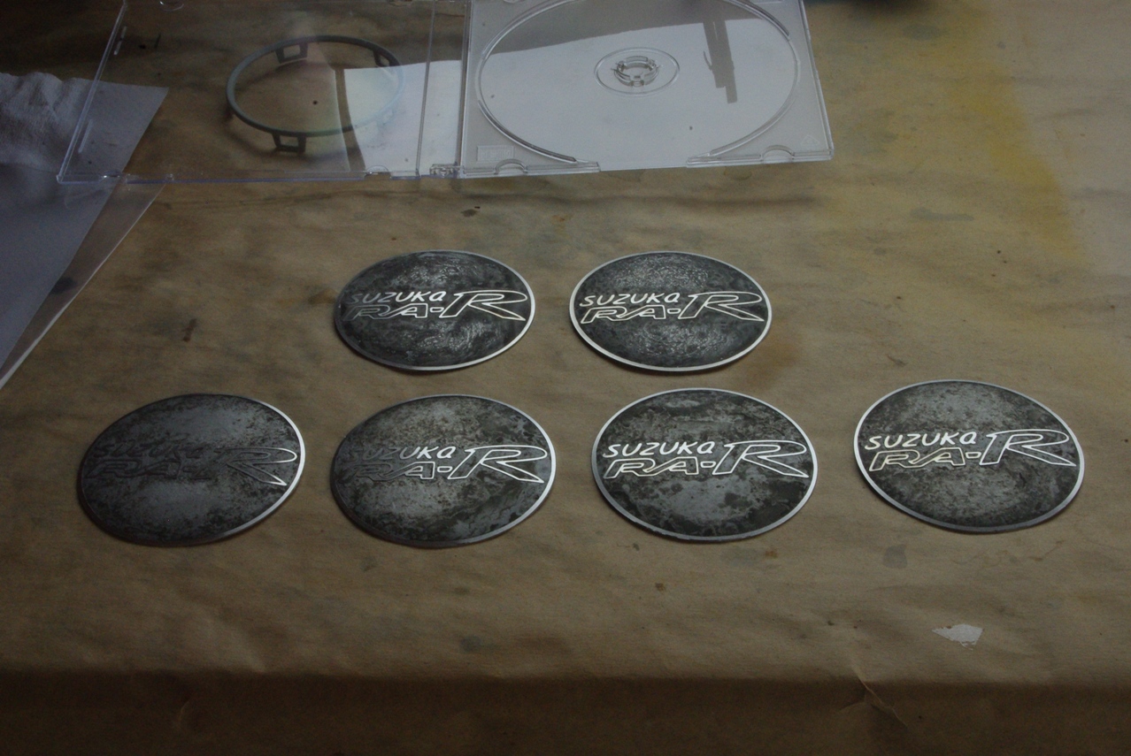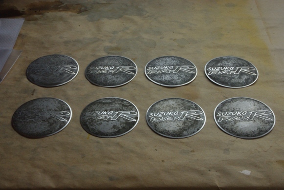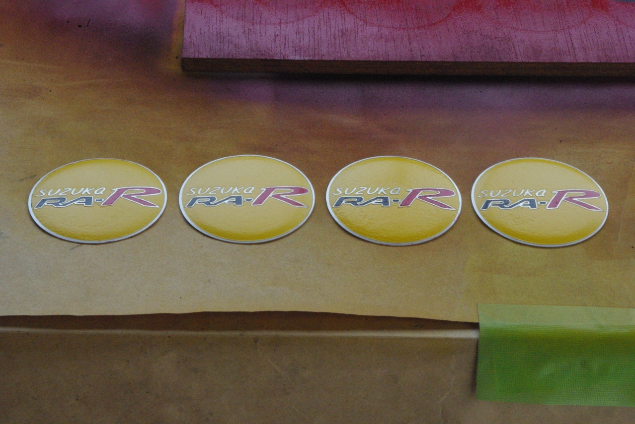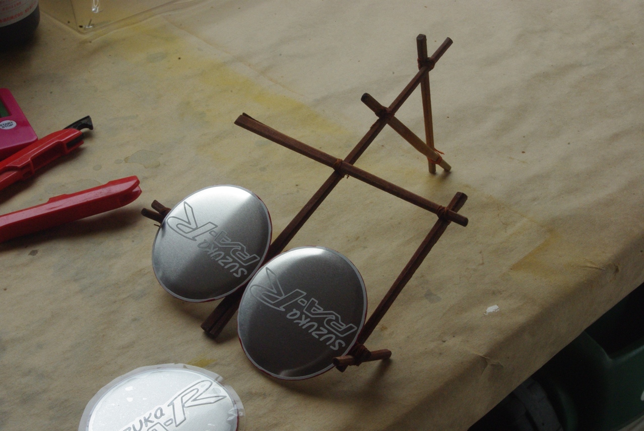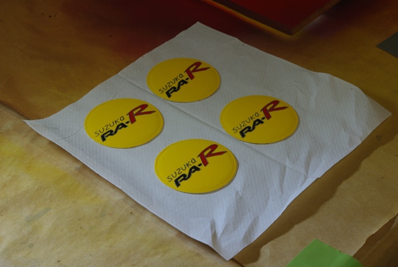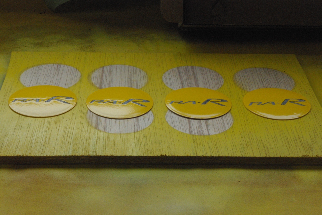 アールエーアール鈴鹿オリジナル自作ホイールセンターキャップレンズの仕上げ、クリア塗装の開始です。