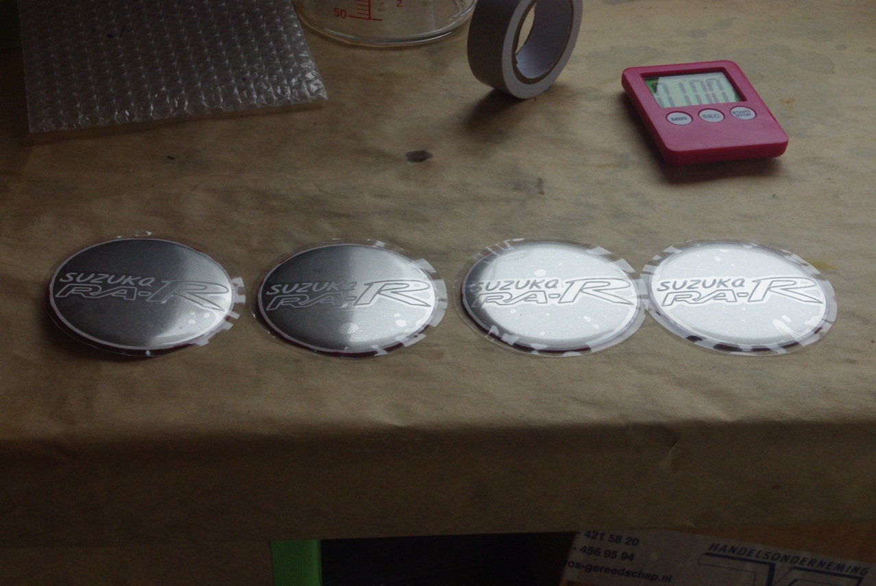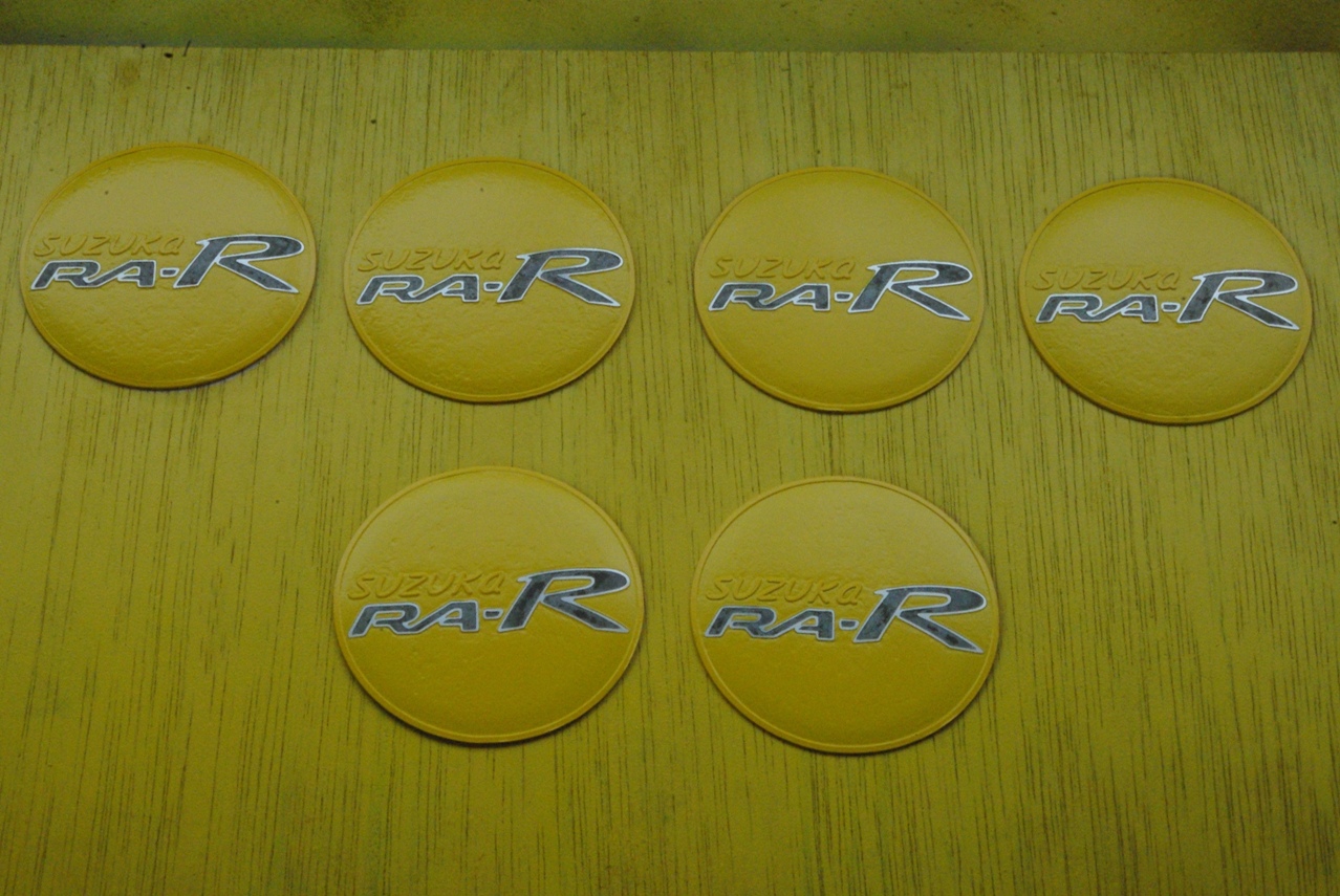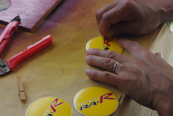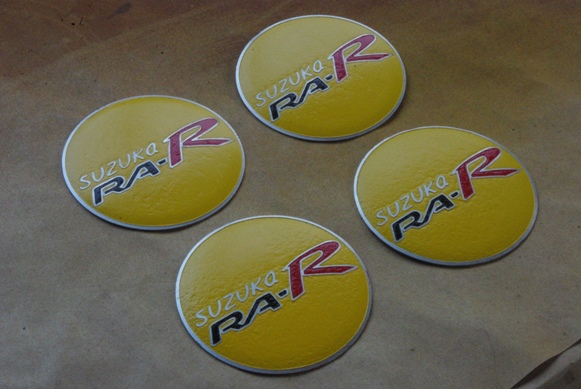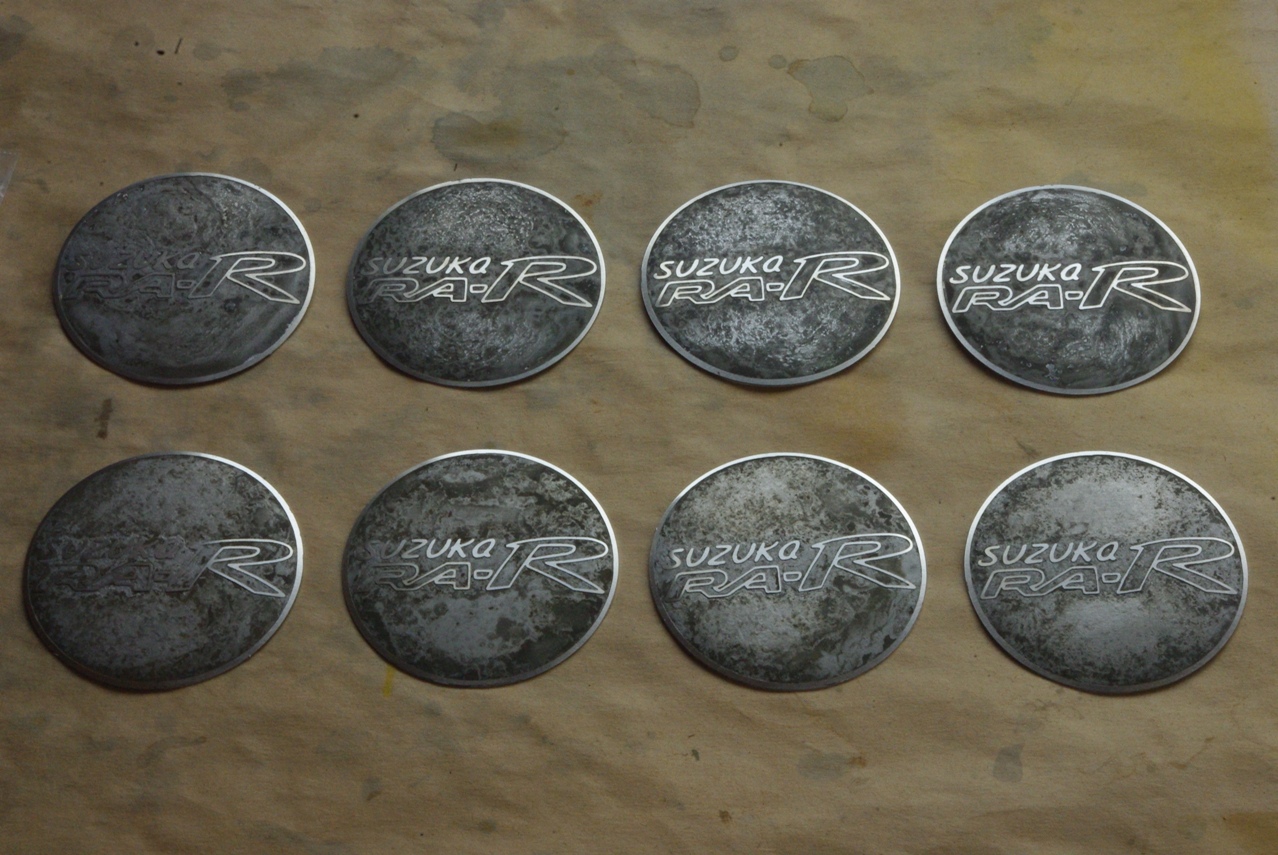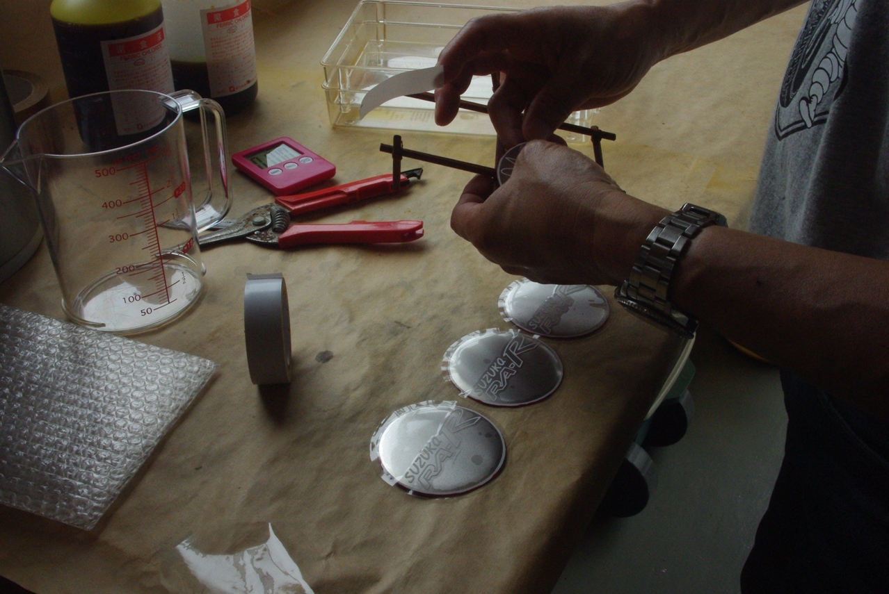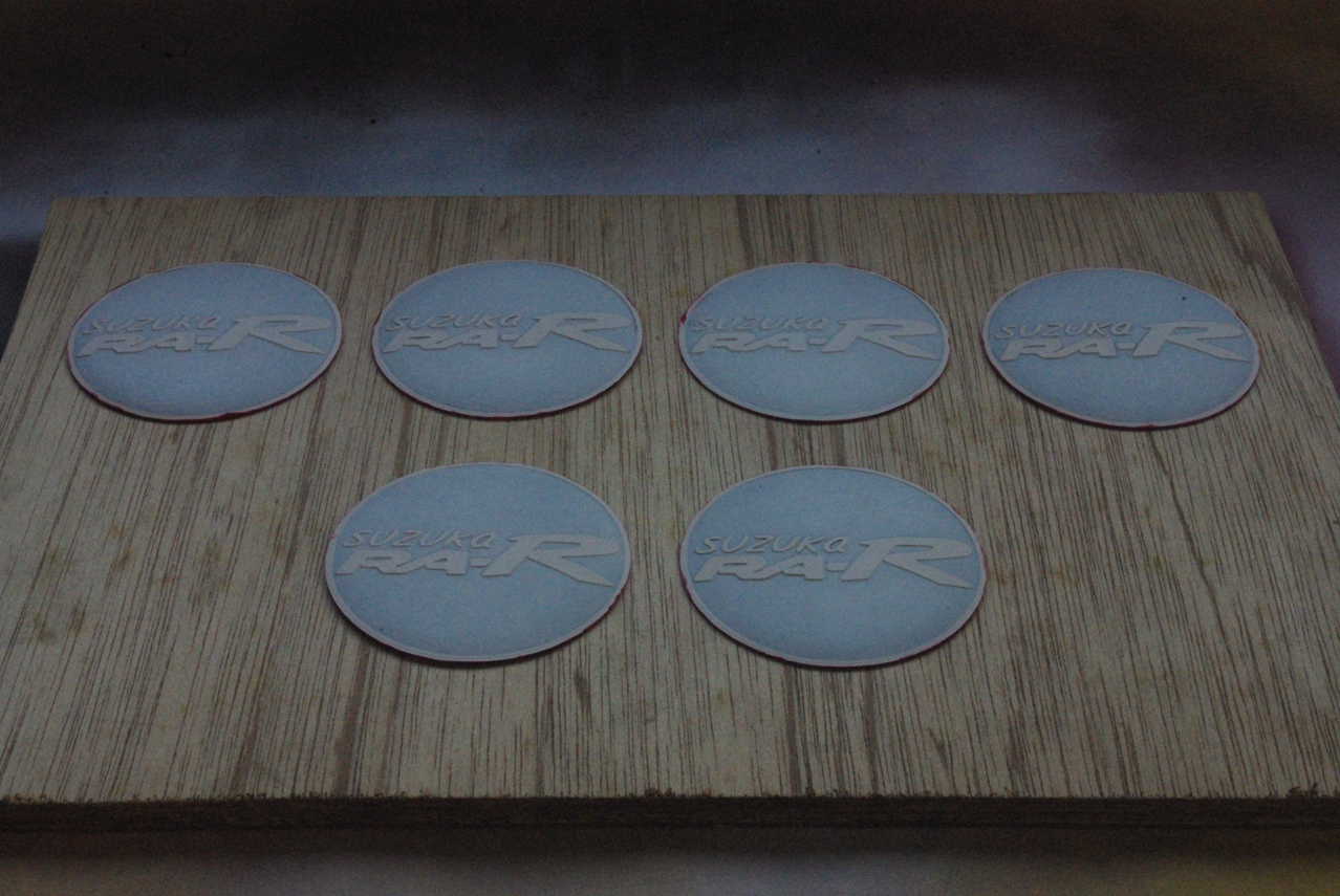 アールエーアール鈴鹿オリジナル自作ホイールセンターキャップレンズの仕上げ、クリア塗装の開始です。