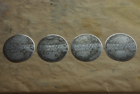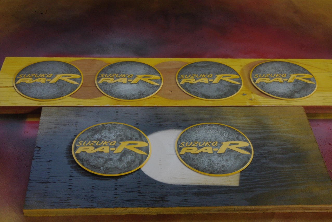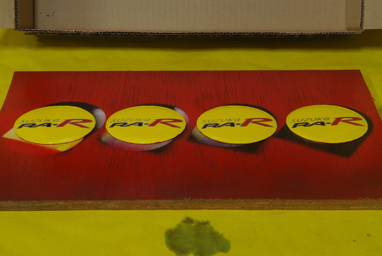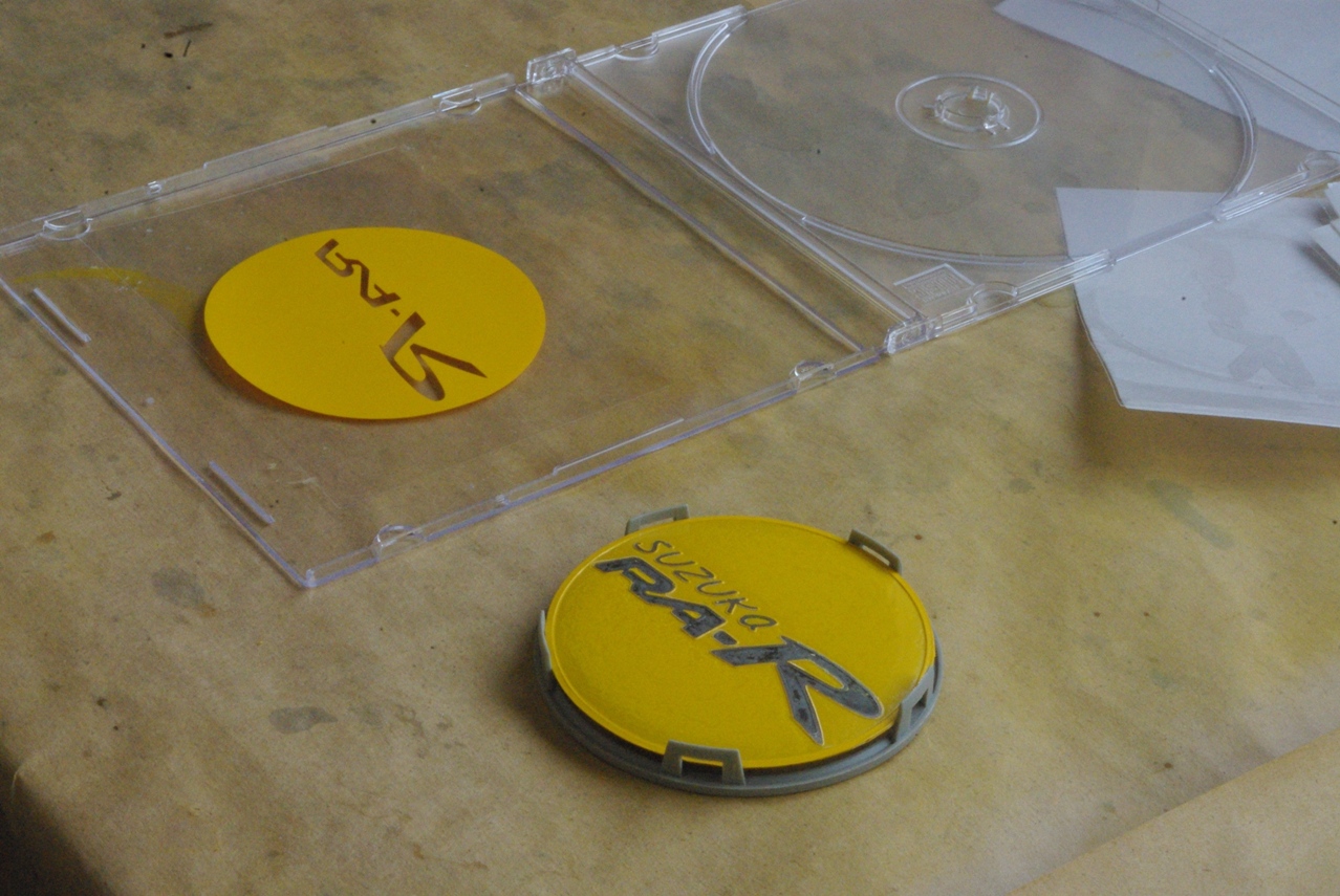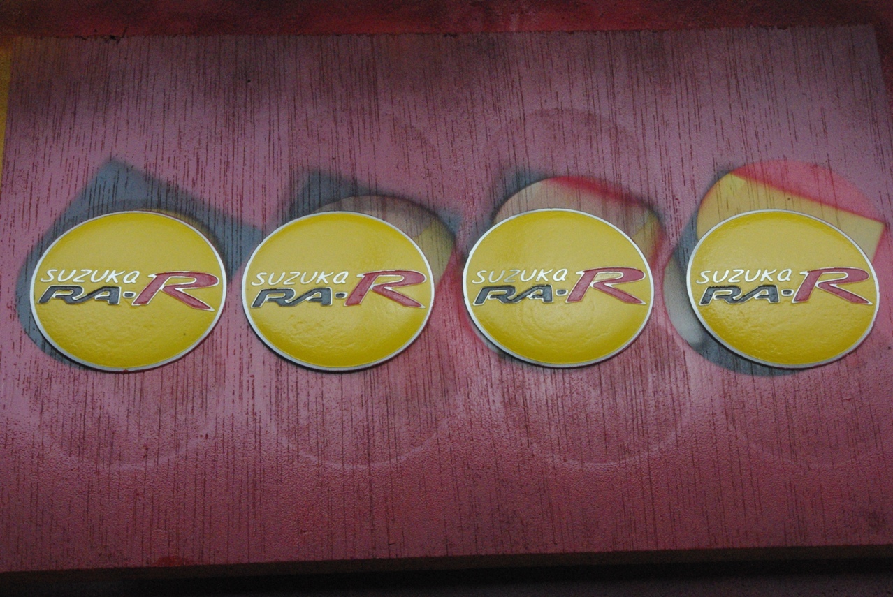 アールエーアール鈴鹿オリジナル自作ホイールセンターキャップレンズの仕上げ、クリア塗装の開始です。