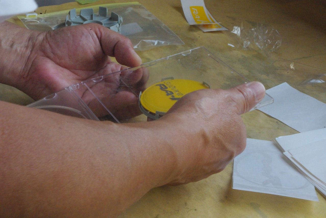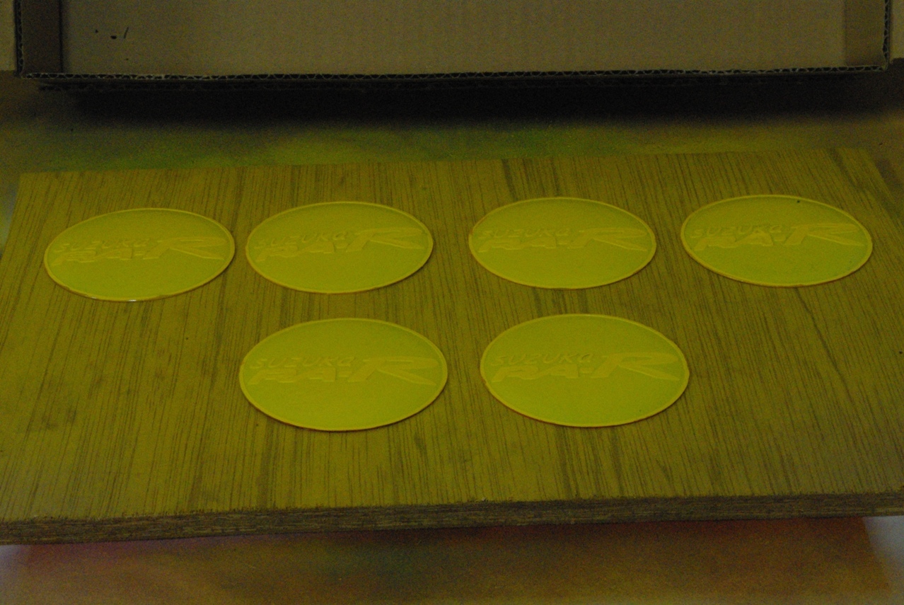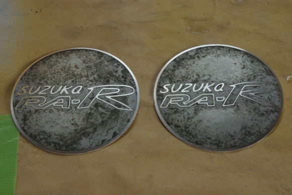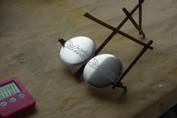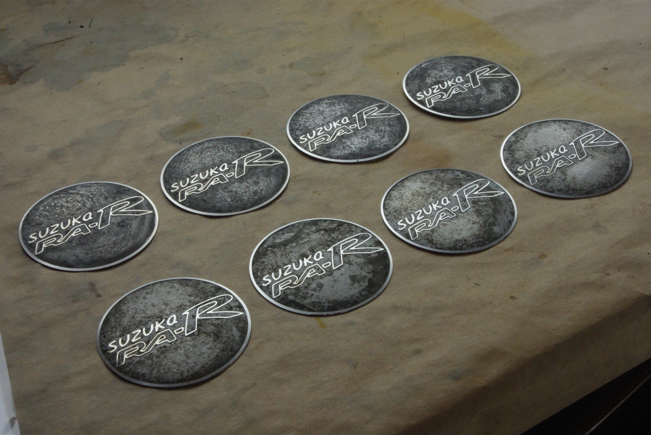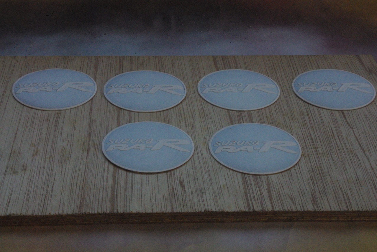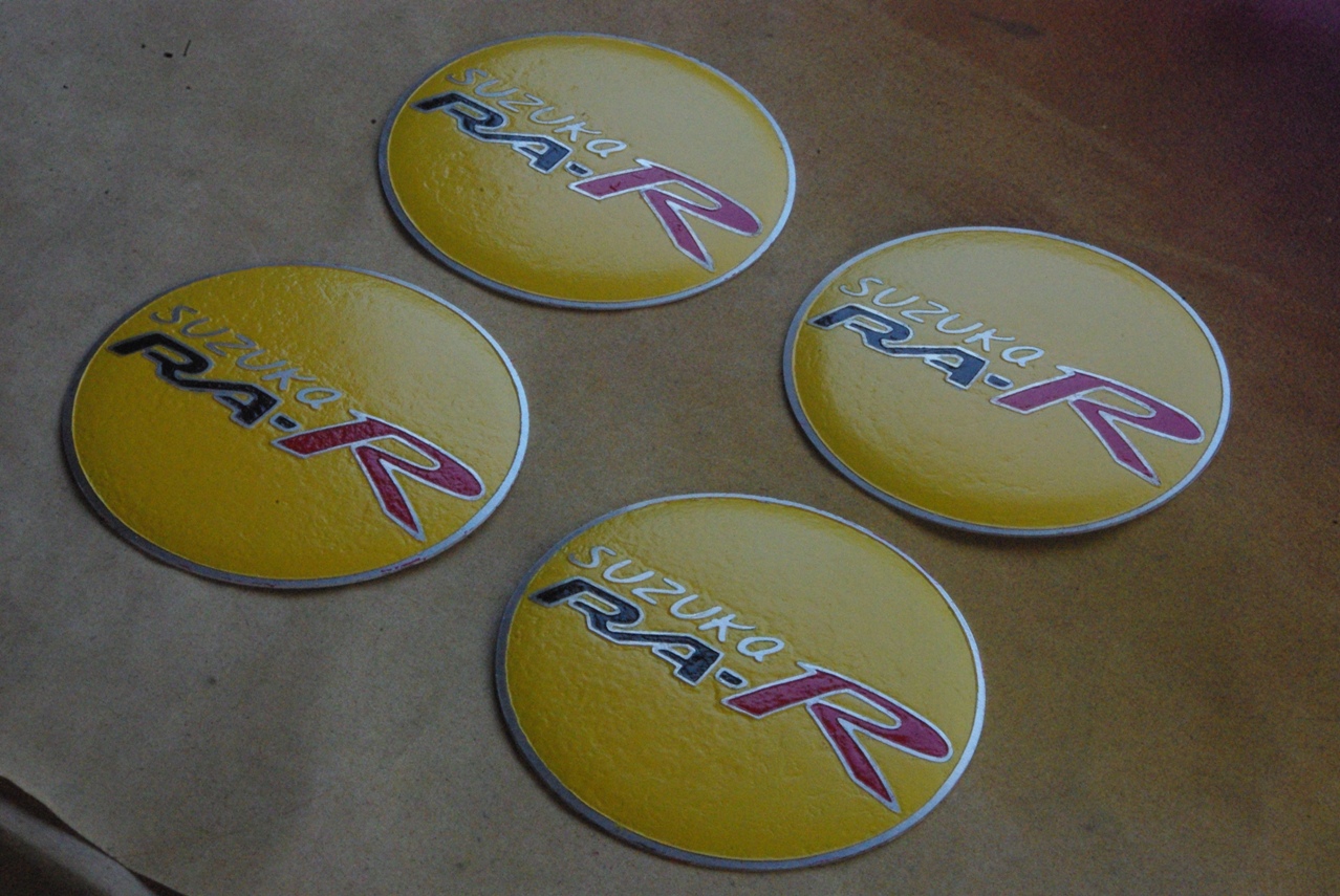 アールエーアール鈴鹿オリジナル自作ホイールセンターキャップレンズの仕上げ、クリア塗装の開始です。