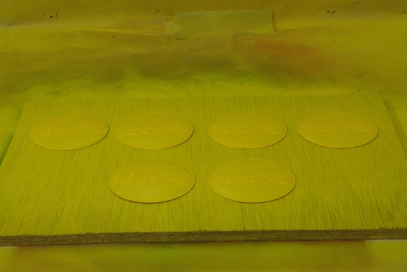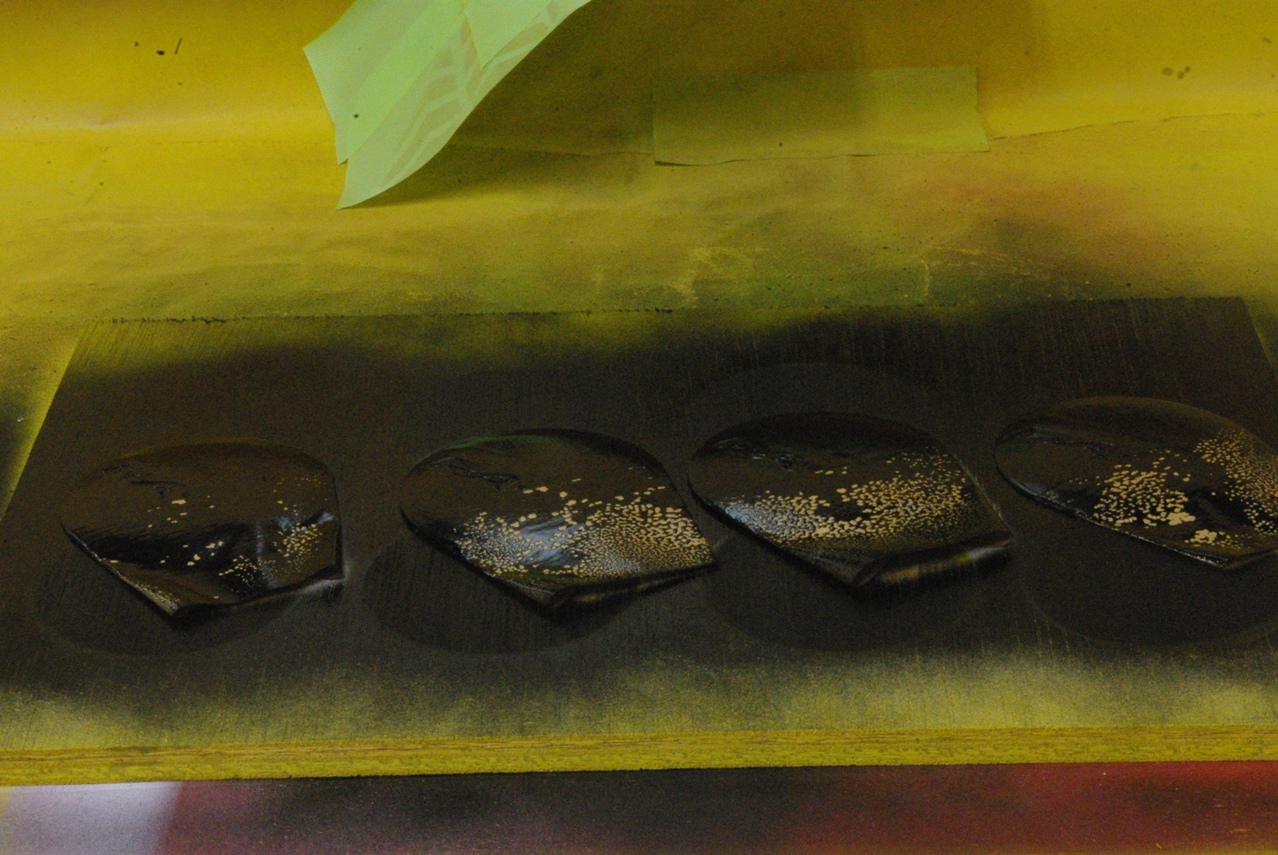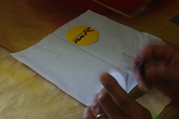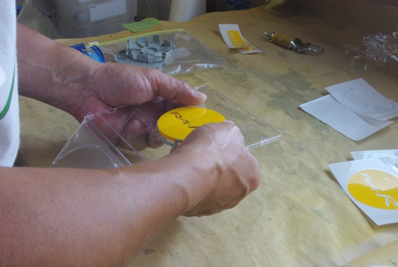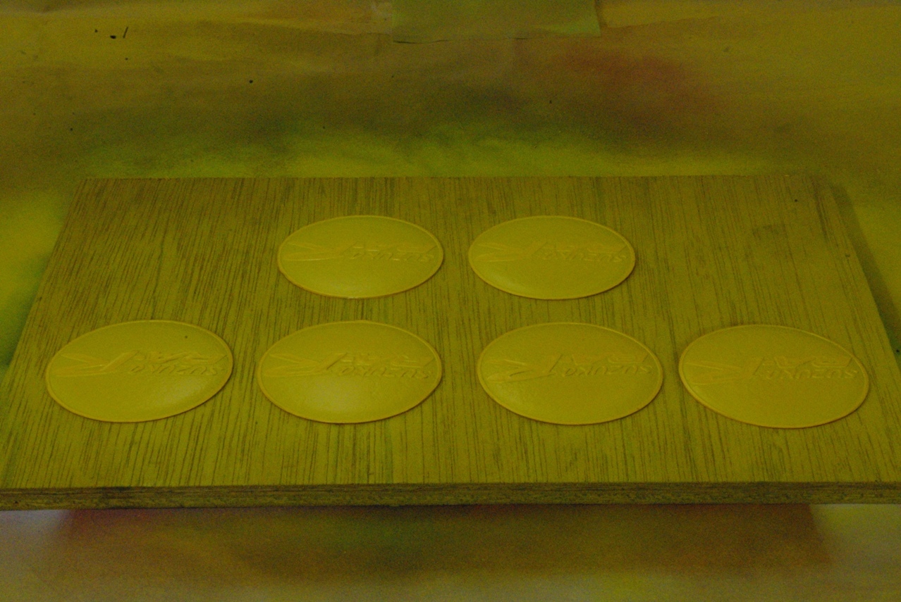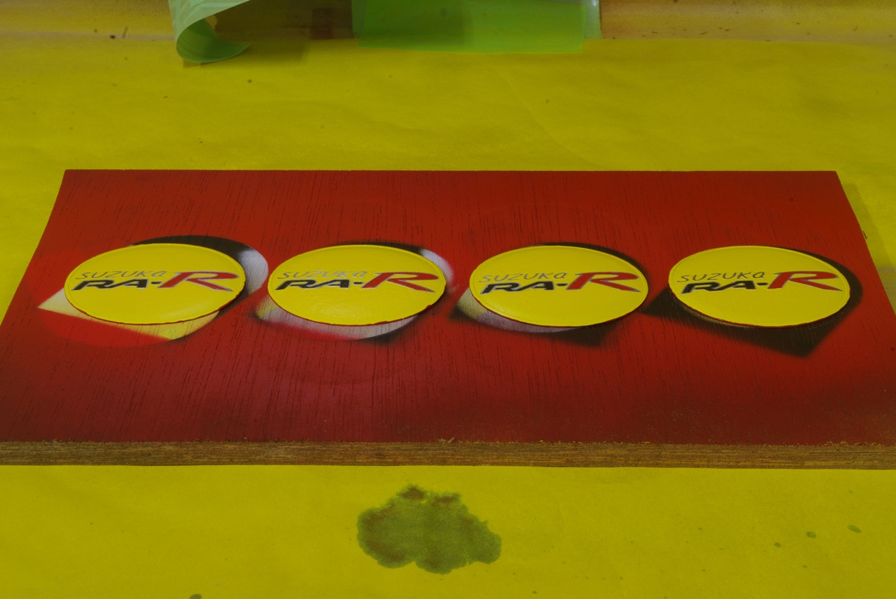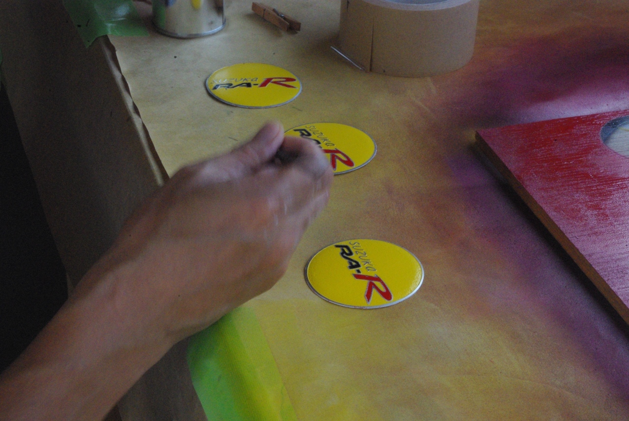 アールエーアール鈴鹿オリジナル自作ホイールセンターキャップレンズの仕上げ、クリア塗装の開始です。