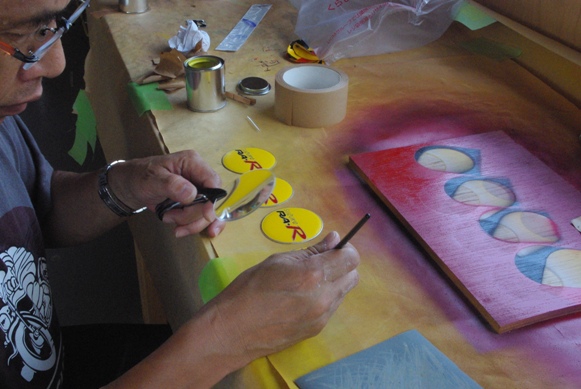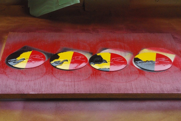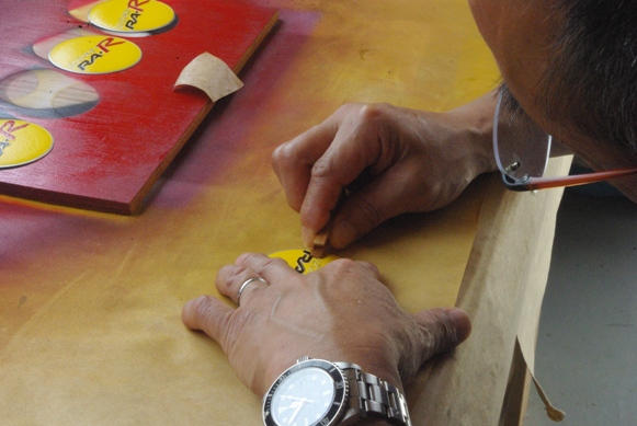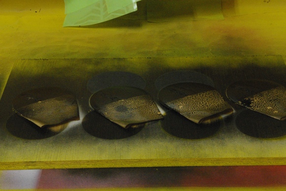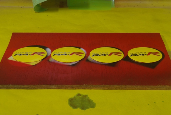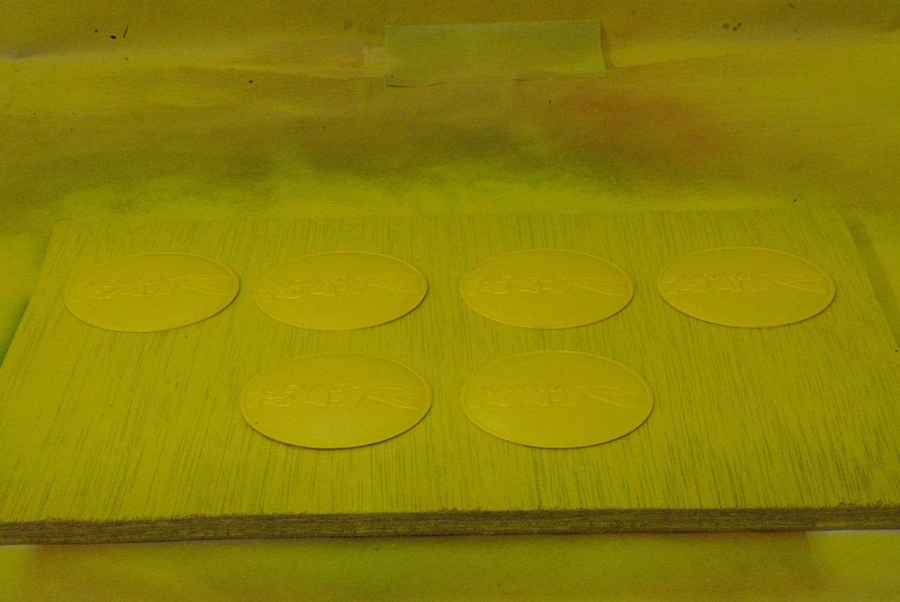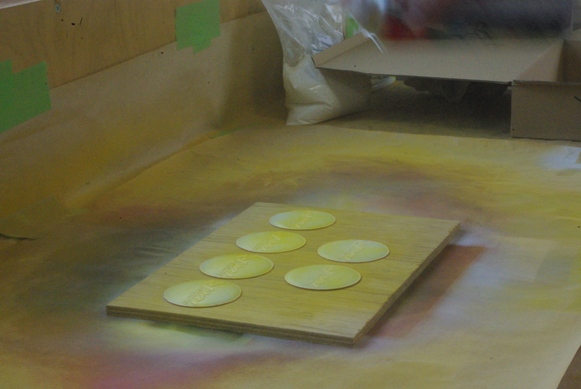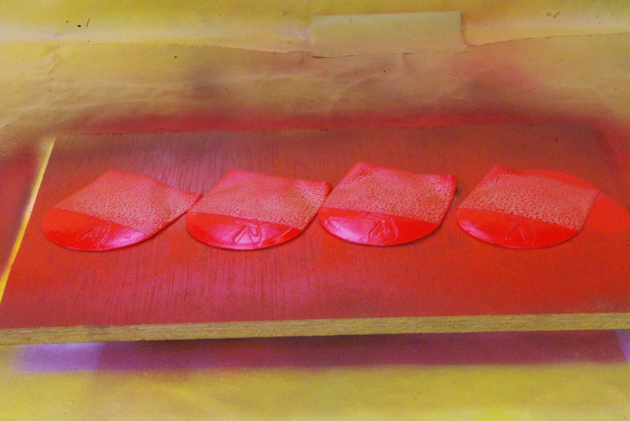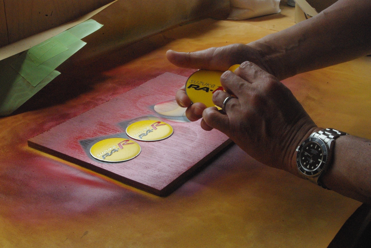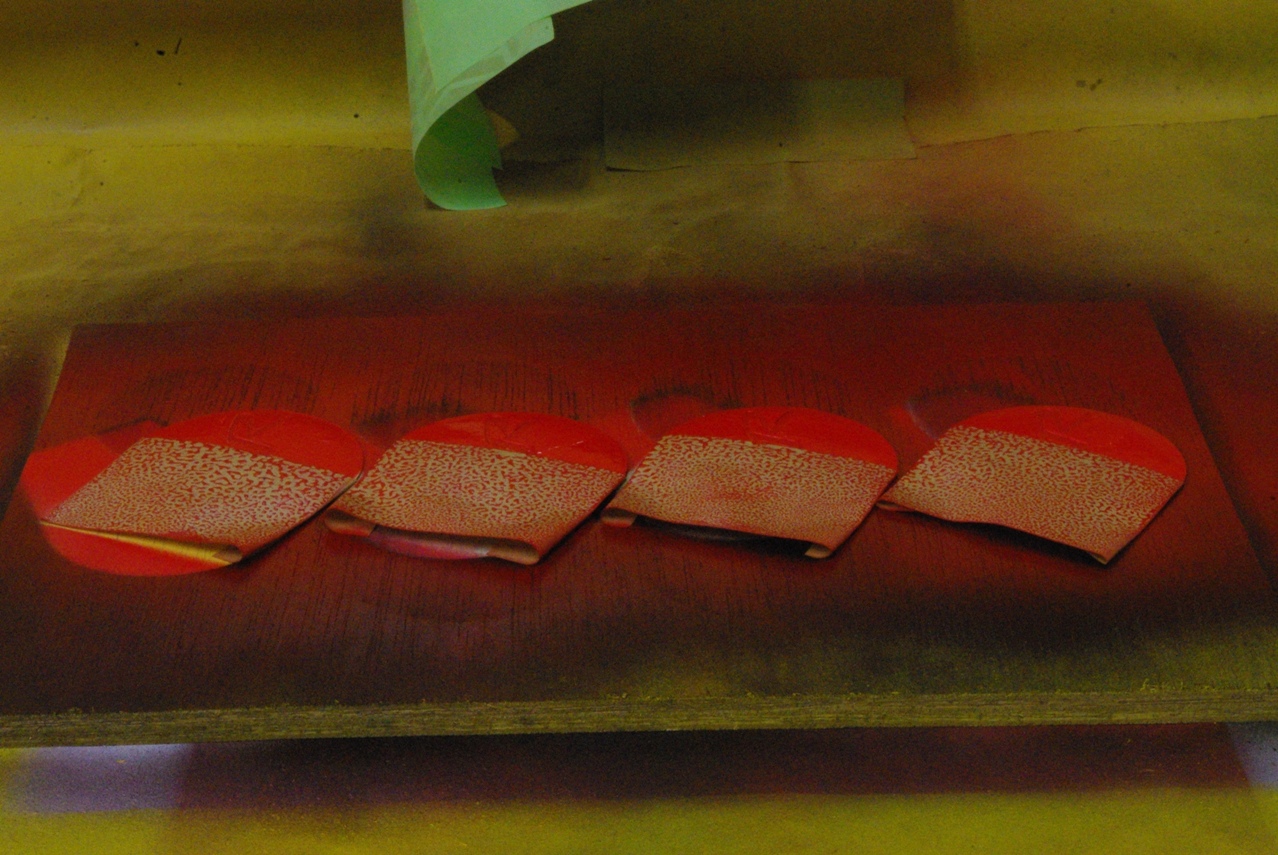 アールエーアール鈴鹿オリジナル自作ホイールセンターキャップレンズの仕上げ、クリア塗装の開始です。
