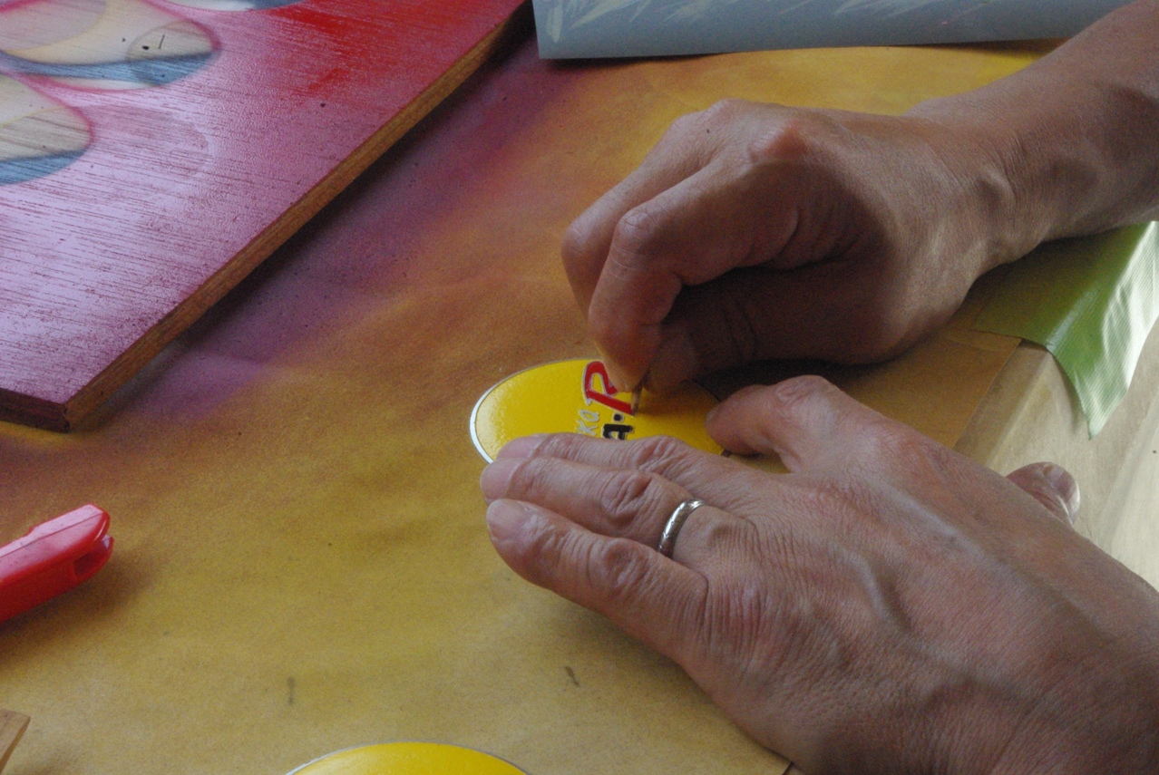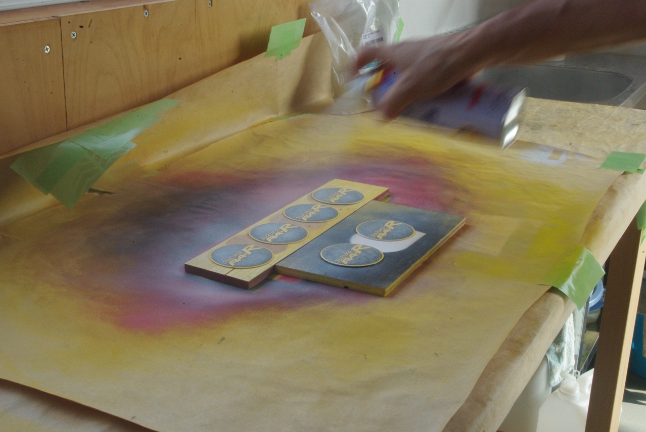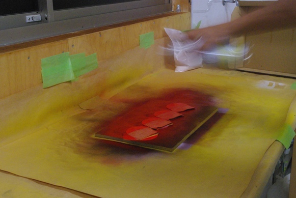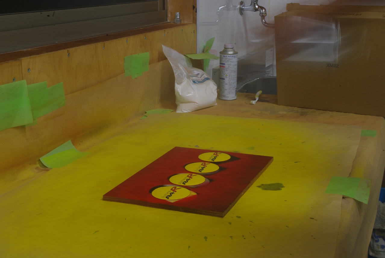 仕上げの3回目、赤文字塗装した直後の画像です。