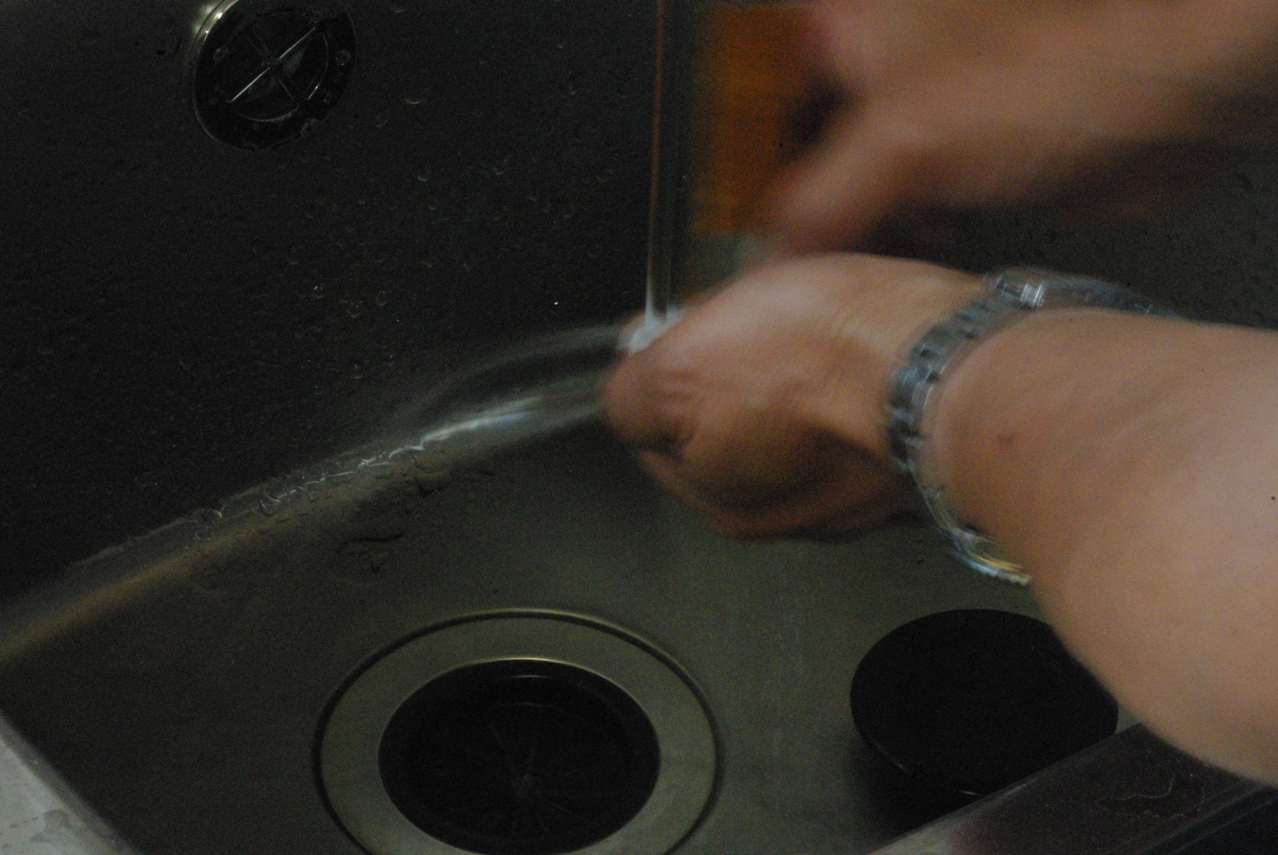 その後引き上げて(ひよっとすると2分を大幅に超えていたかもしれません)消石灰溶液に浸して、完全に反応が収まるのを確認してから、水道水をたっぷり流してレンズに付着した溶液を完全に洗い落とします。