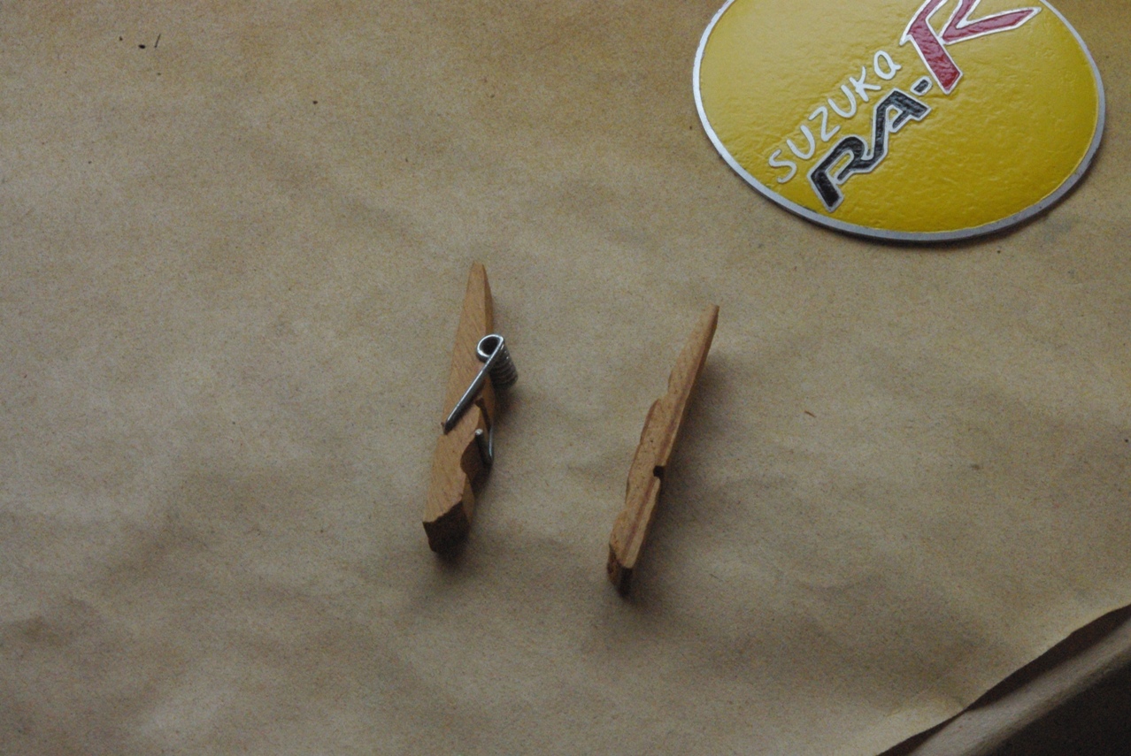どういう使い方かと言うと、洗濯バサミをバラして、一方だけ使うことにしたわけです。
