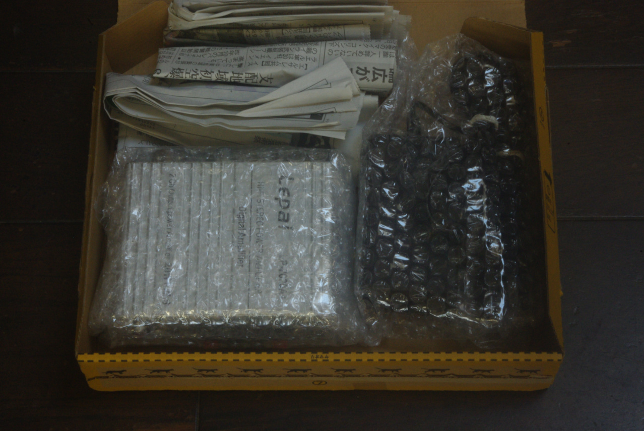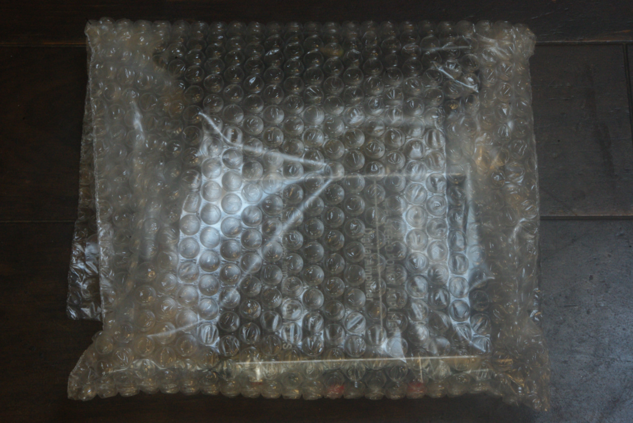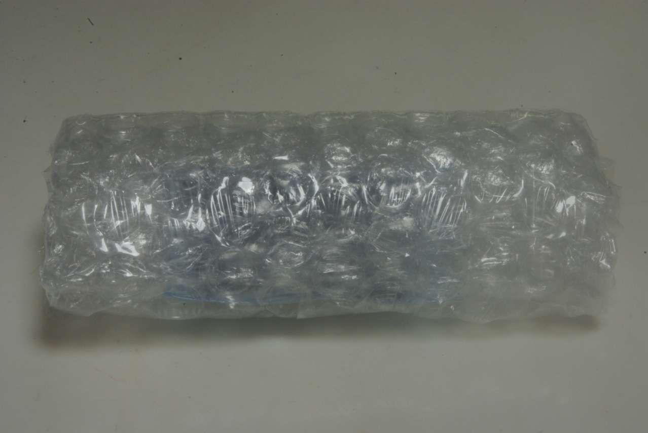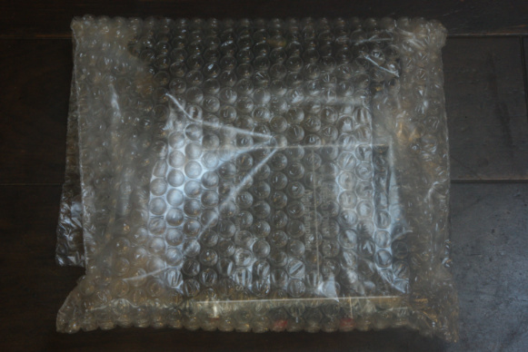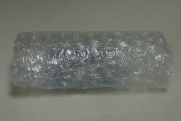 梱包はダンボール箱に両更紙の緩衝材と、ご覧のエアーキャップシートに包んだ裸の商品というごく一般的な包装です。