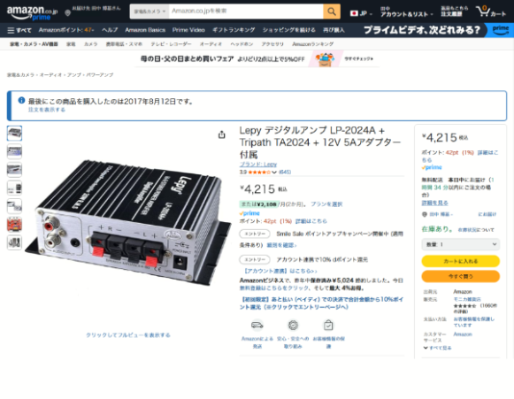 そこでネットで手頃なパワーアンプを探したところ、これを見つけました。
