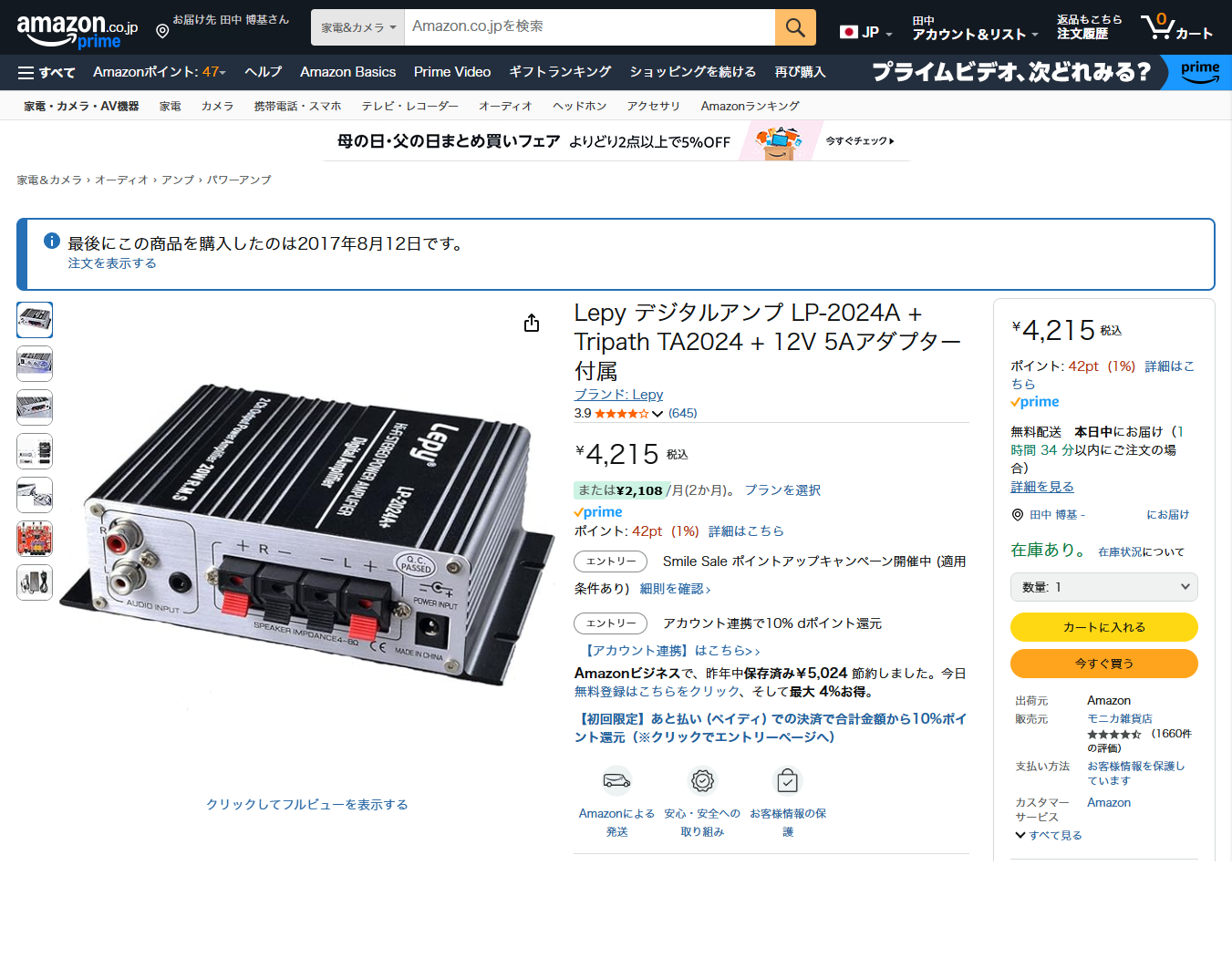 それと同時に現有していますLepy デジタルアンプ LP-2024A+ の予備として持っておくのも悪くないと考えたからです。