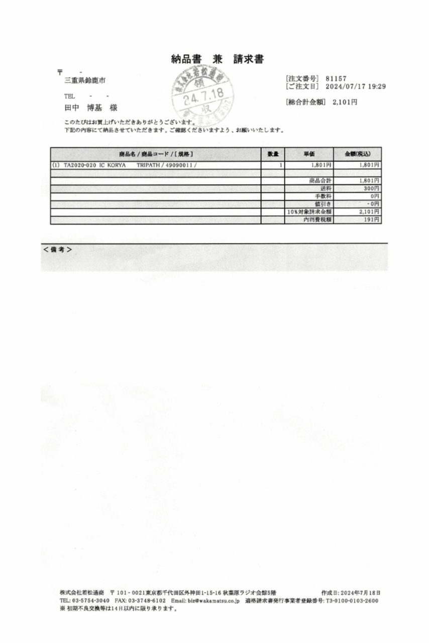 出品者の方は石川県ということで、到着まで時間は掛かりませんでした。