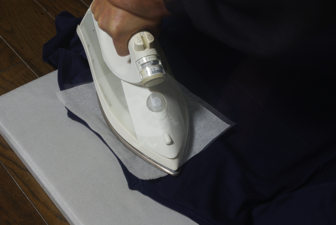 もし、ステッカーの剥がれが確認されたら、そのまま元に戻して再度アイロンプレスを繰り返します。