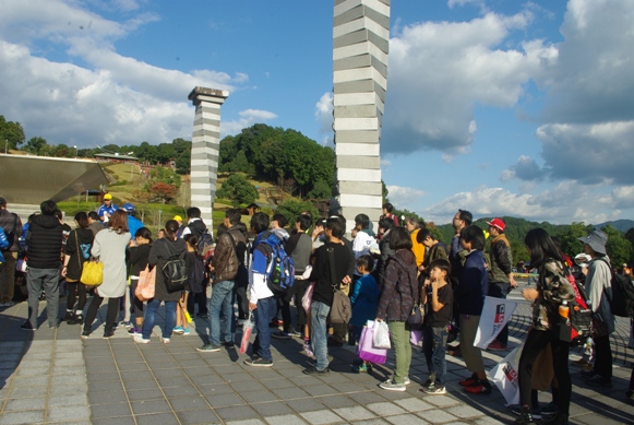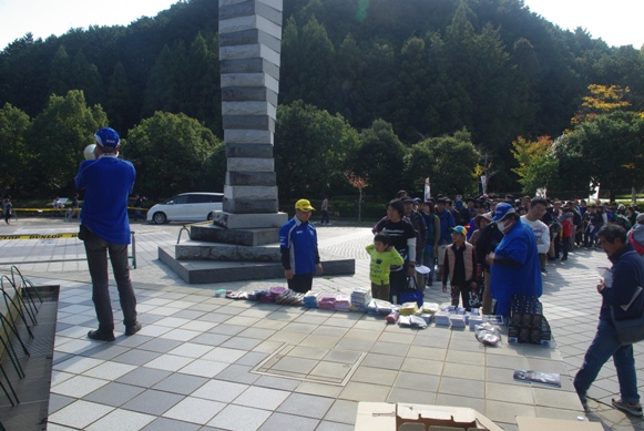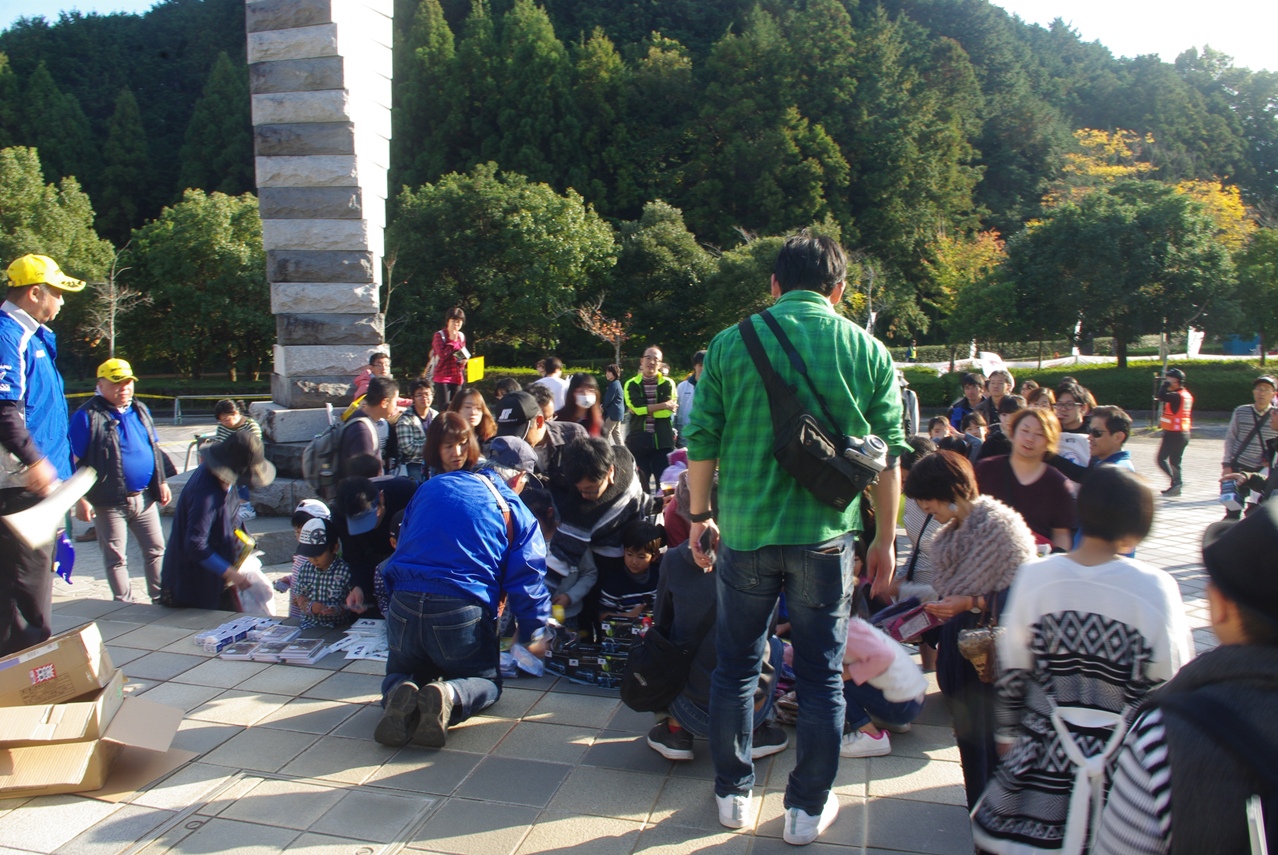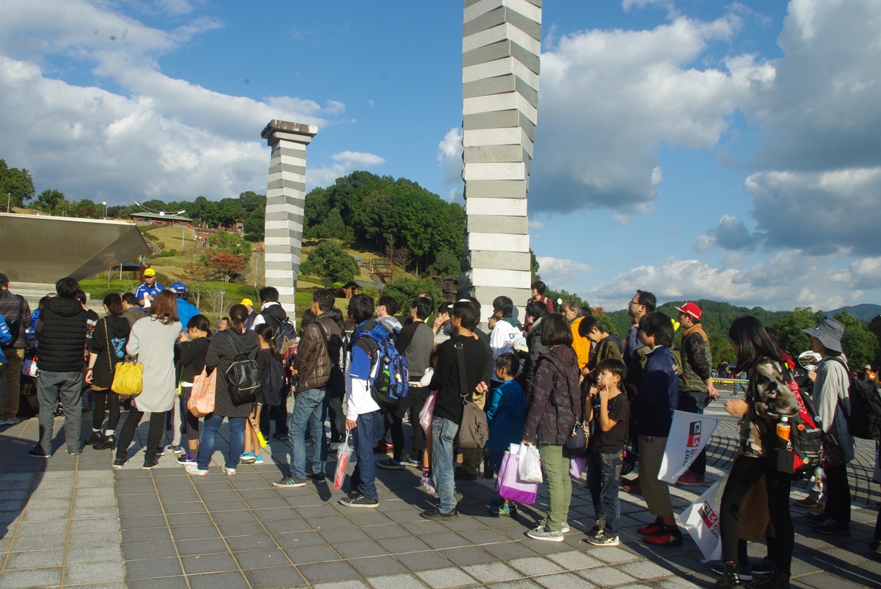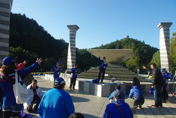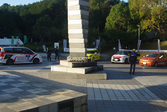 そして、私はそこからみなさんと別れて、予め大石さんと打ち合わせた通り、クルマごと丘の頂上の「かちどき広場」を目指し、さらにその先「わんぱく広場」のつづら折りの車道を下って、入口広場に無事到着しました。