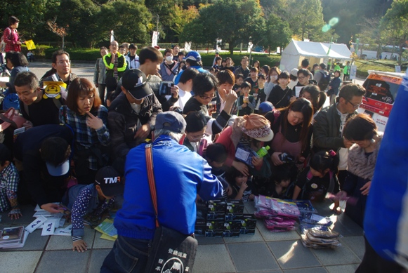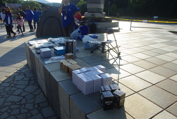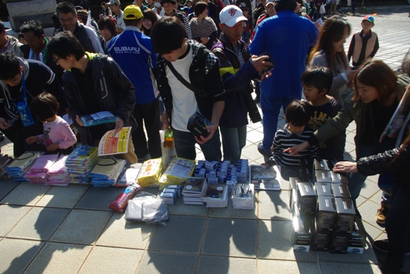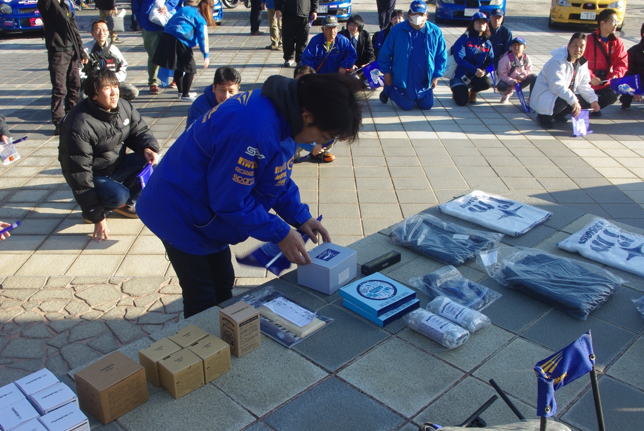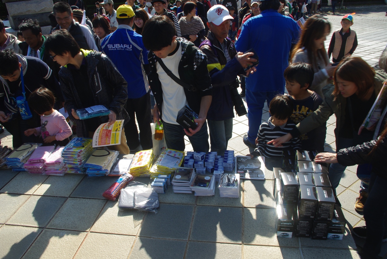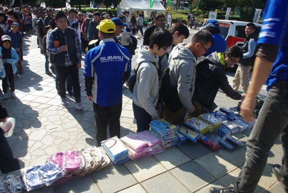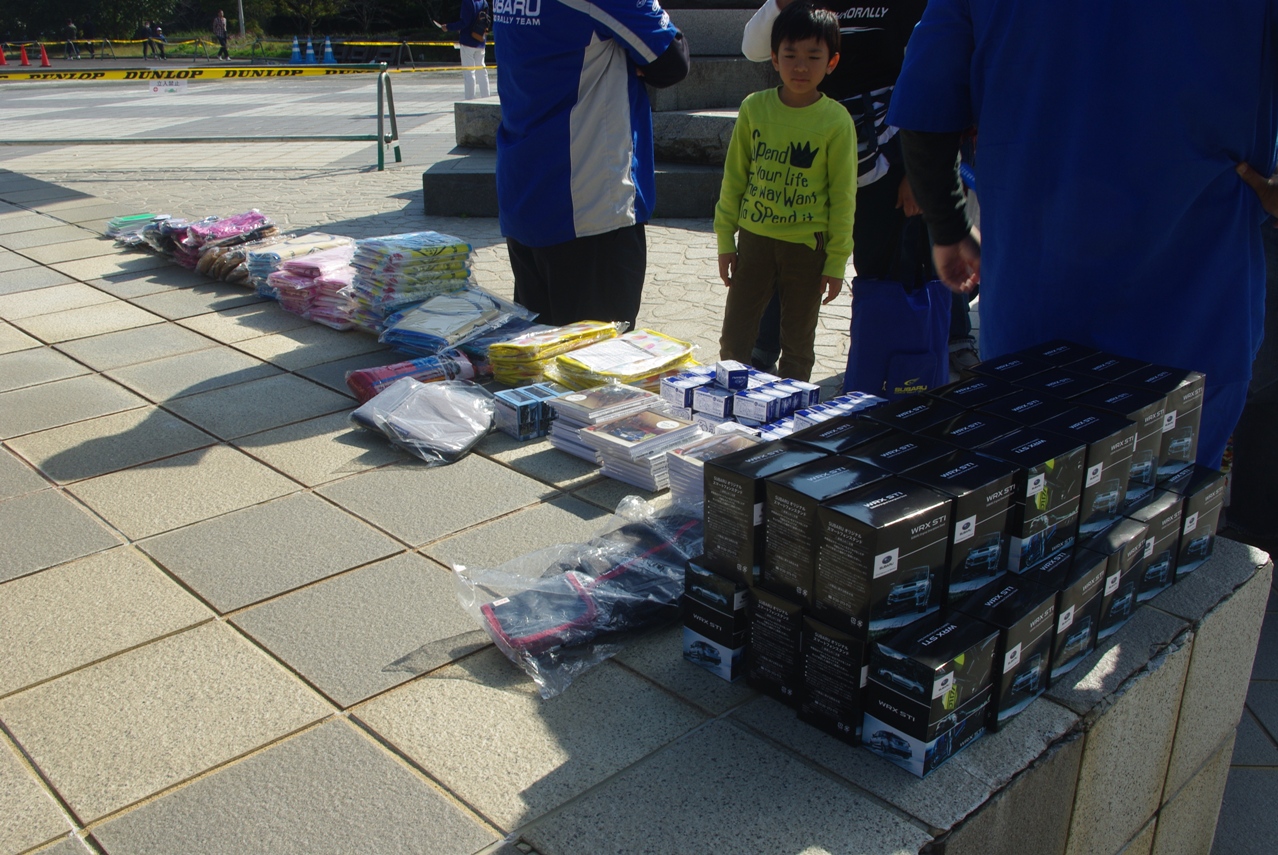 そしてメンバー有志の方々が、一般ギャラリー向けの「じゃんけん大会」のSUBARU景品グッズを、午前と午後に仕分けして下さいました。