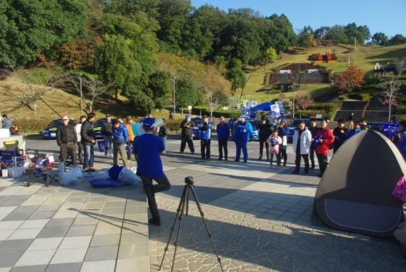 まったくマヌケな話ですが、取りあえずTakarobinさんに尋ねたところ、私と一緒にミニ集合写真に収まったプレネスさんが私のデジイチを見つけられて、その後Takarobinさんが預かって、このオフ会エリアの入口にある新城市の案内テントに遺失物として預けて下さったということでした。