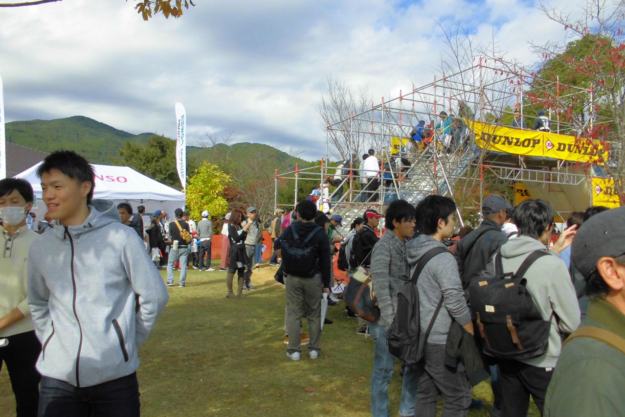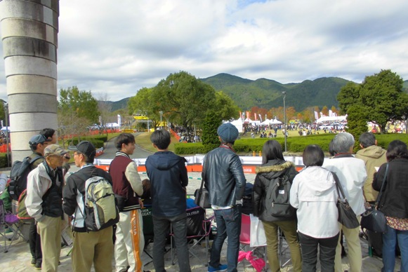 仮設横断橋は、警備員の方々が誘導されて安全に対する配慮はしっかりしていたのですが、その結果仮設横断橋を渡るためにこのような長蛇の列が出来てしまってました。