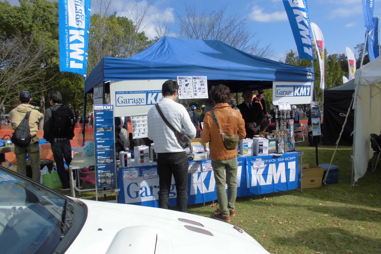 企業ブースに緒方さんのgarageKM1のテントを見つけました。