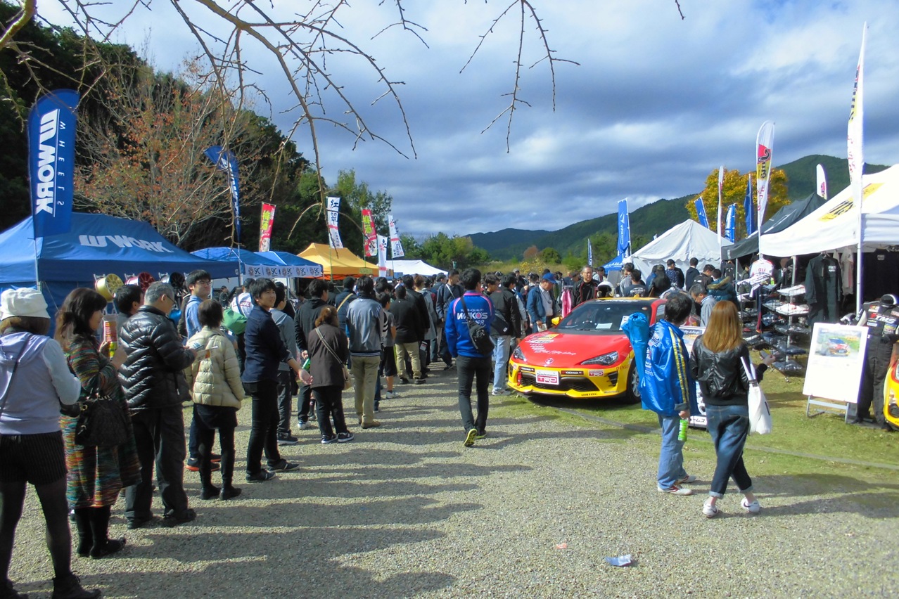 指示待ちの間に撮影したのが、丁度ゲストドライバー・デモランの司会進行をしている現場でした。