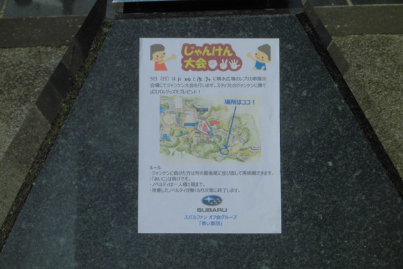 オフィシャル業務に出掛けたときに、こっそりとこのオフ会エリアと「じゃんけん大会」のゲリラPRチラシを貼らせて頂きました♪