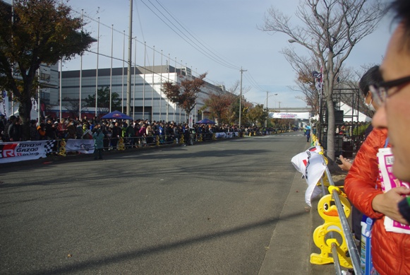 会場は既に相当な人だかりで、ポートメッセの建物のある側は人垣もほぼ満員状態でしたので、比較的空いてそうな反対側に行きました。